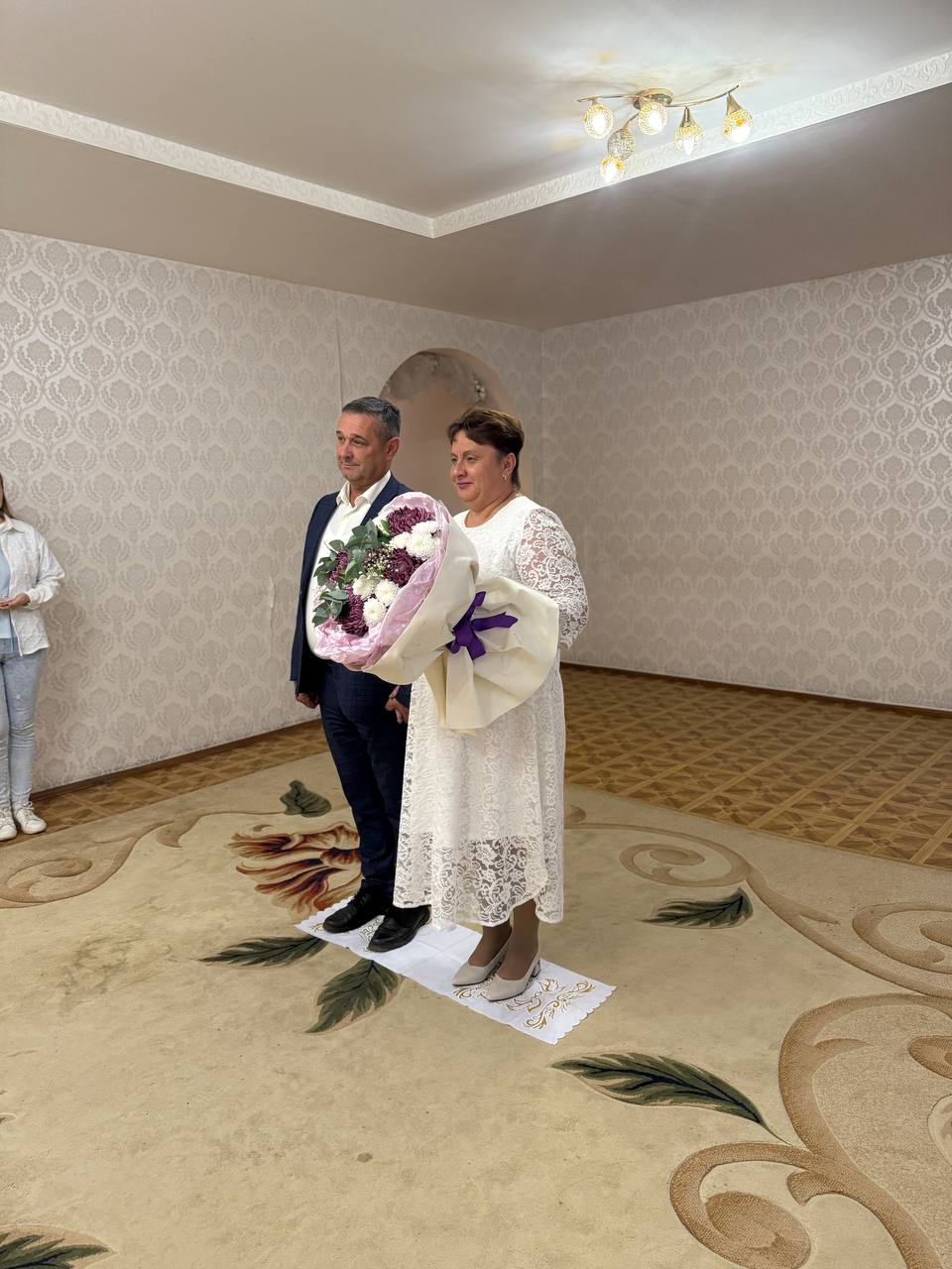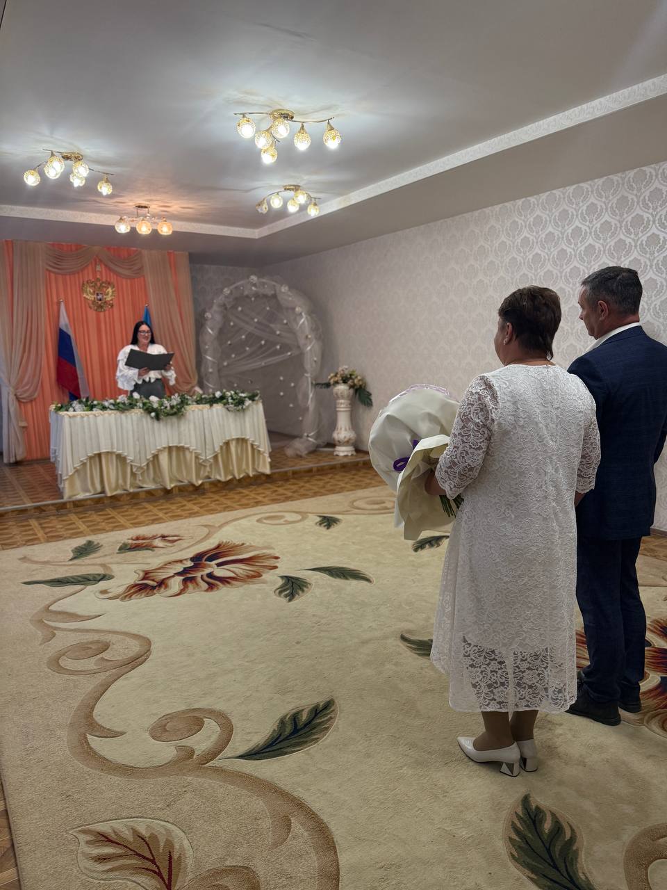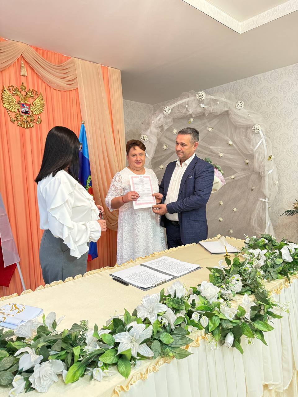 В Жовтневом отделе ЗАГС г. Луганска состоялась торжественная церемония регистрации жемчужного брака Городовиковых Сергея и Антонины.