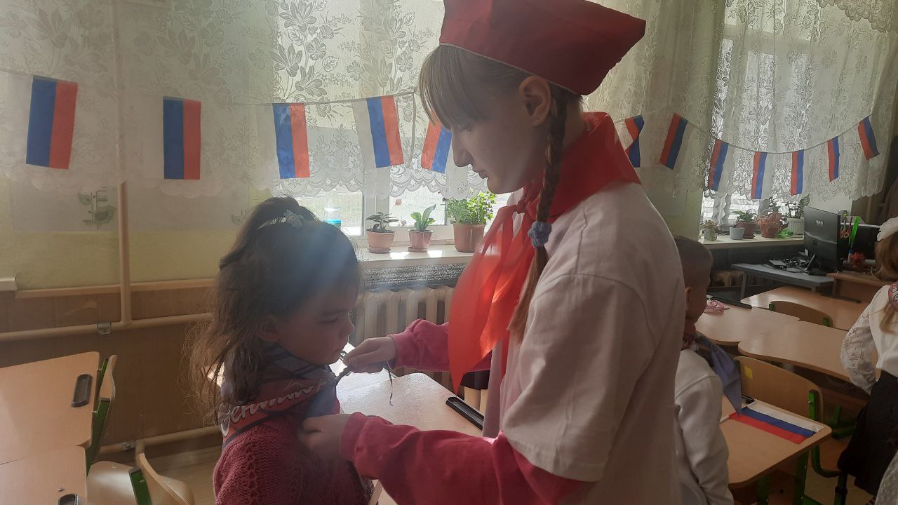 Первоклассники ГБОУ ЛНР "Рубежанская ОШ № 3" в торжественной обстановке произнесли клятву и получили от старшеклассников -наставников галстуки. На мероприятии присутствовал почетный гость - представитель Рубежанского военного комиссариата, который произнёс напутственные слова нашим ребятам и поздравил с этой значимой датой.