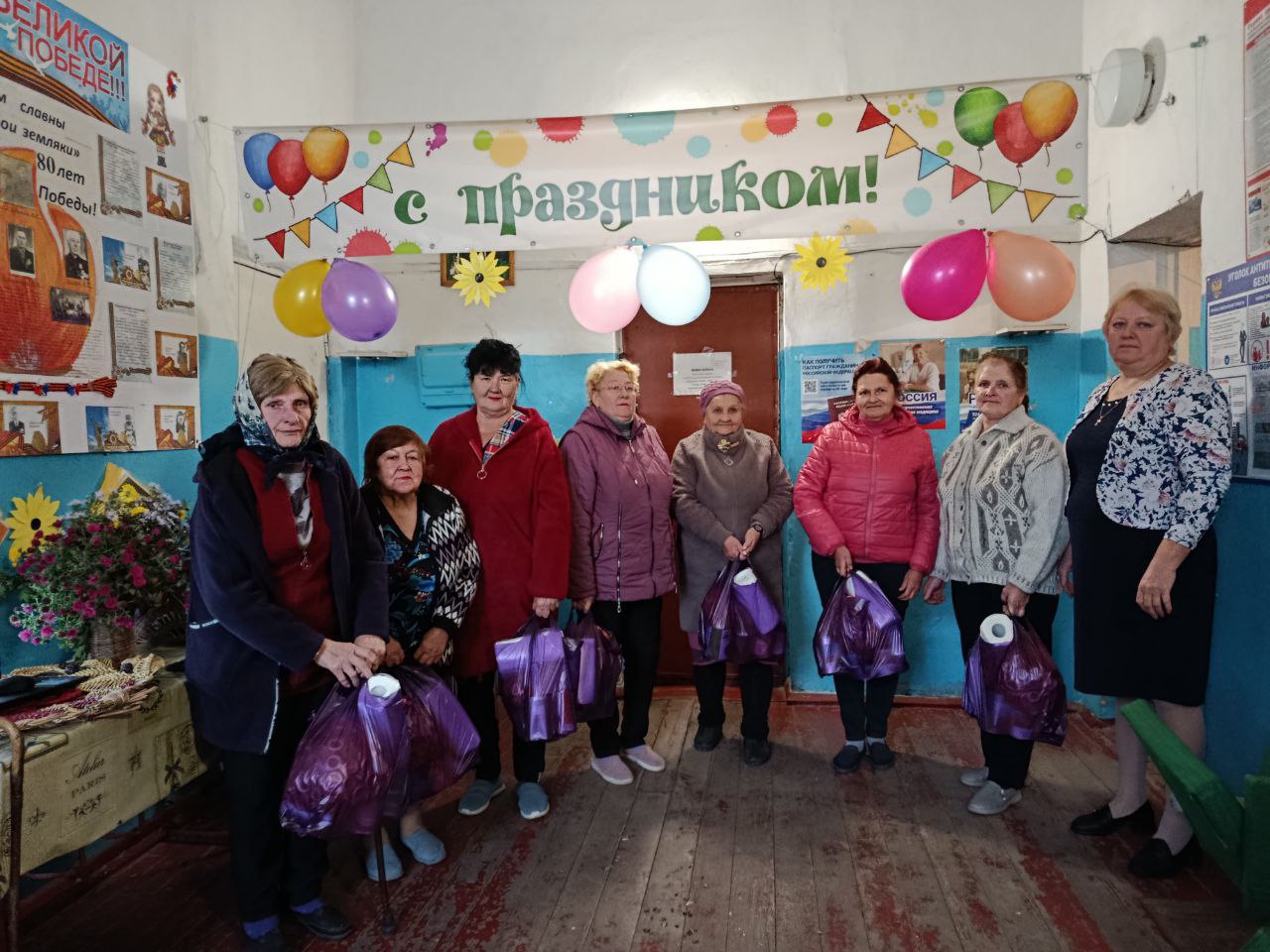 На котором поздравили с праздником пожилых людей, звучали песни и стихи. Все присутствующие получили подарки.