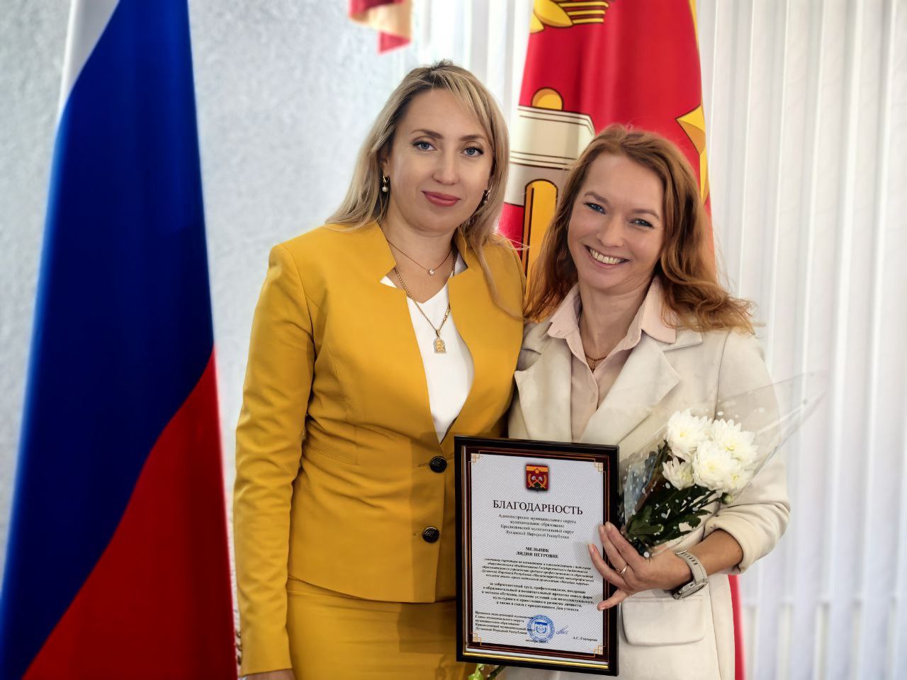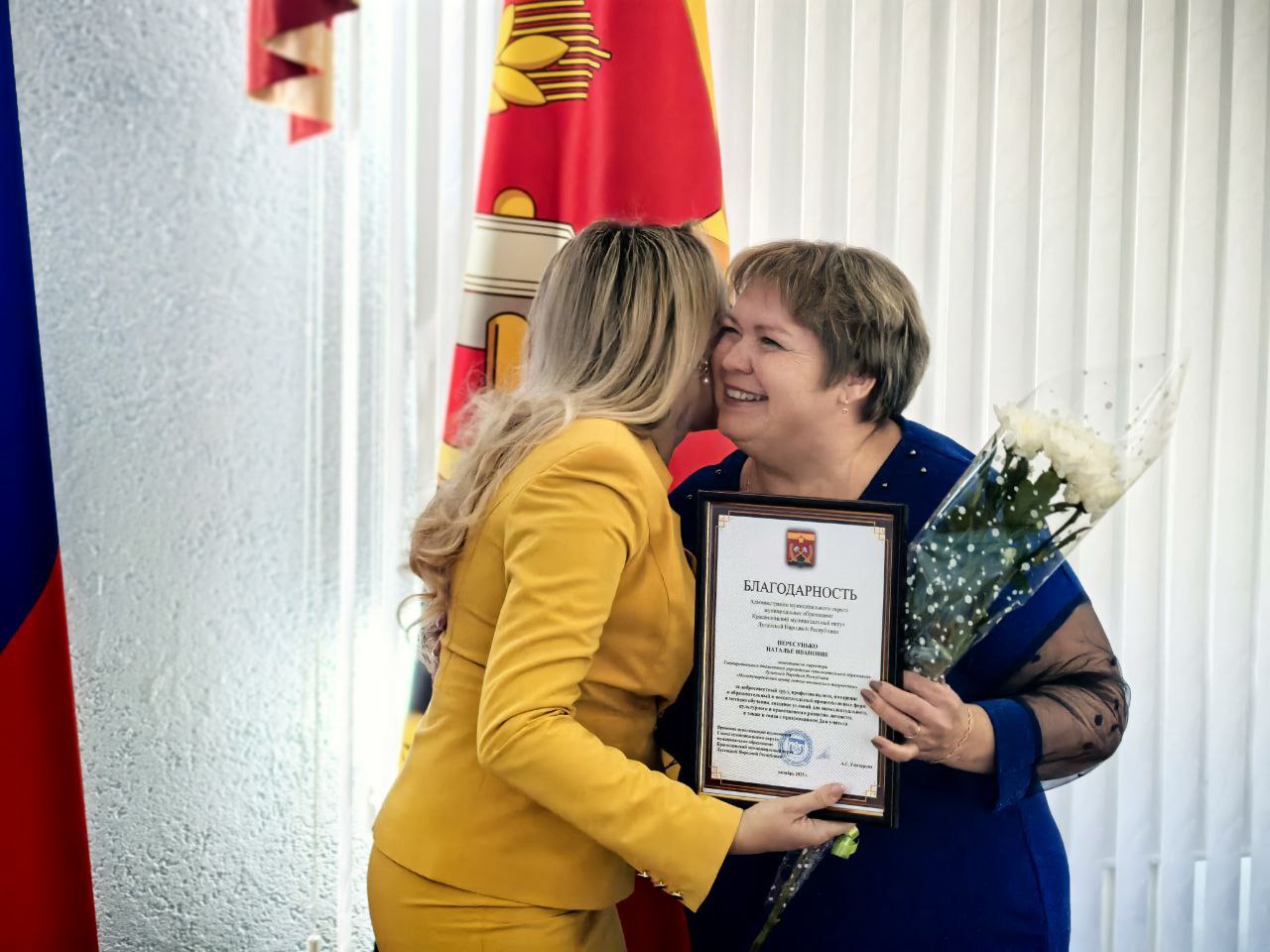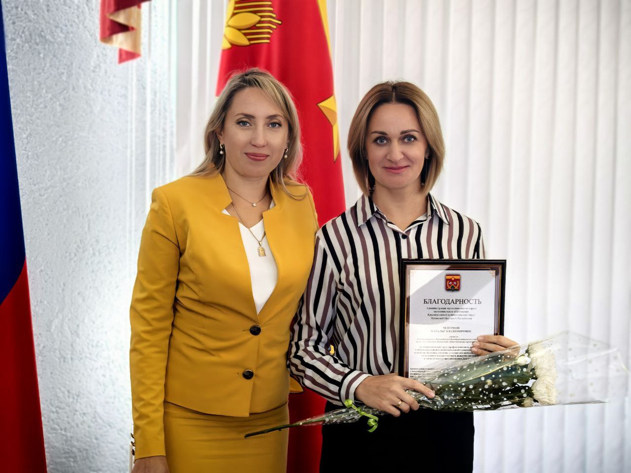 Торжественная церемония превратилась в живой и душевный праздник благодаря ярким эмоциям и искренним улыбкам участников. Особую атмосферу создала солистка Краснодонского Дворца культуры им. «Молодой гвардии» Дарья Ушакова, исполнившая музыкальную композицию, которая наполнила событие праздничным настроением.