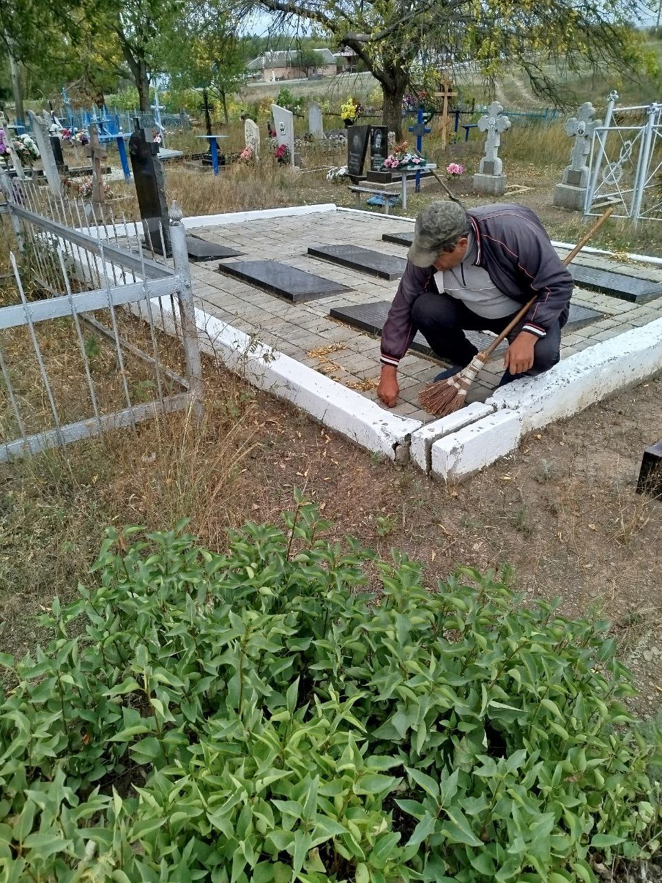 Работники отдела жизнеобеспечения села Благовка Администрации городского округа город Ровеньки занялись уборкой территории захоронений на центральном кладбище с. Благовка.