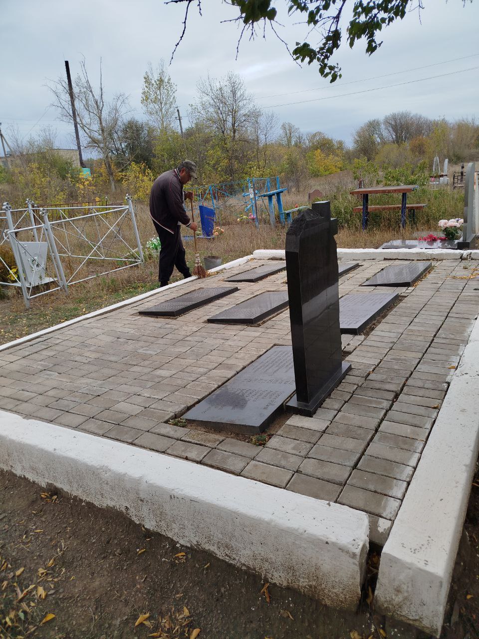 Был убран сорняк между плитами, сухие листья, ликвидирован кустарник. Уборка братской могилы участников Великой Отечественной войны - это дань памяти и бесконечной благодарности поколению наших дедов и прадедов, их мужеству и стойкости.
