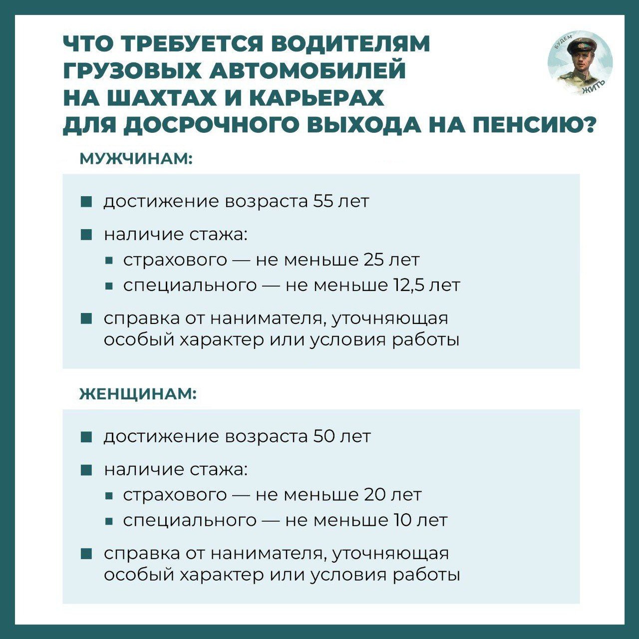 Выйти на заслуженный отдых раньше общеустановленного возраста имеют право лица, которые управляли транспортными средствами на шахтах, разрезах, рудниках или рудных карьерах при вывозе полезных ископаемых и породы.