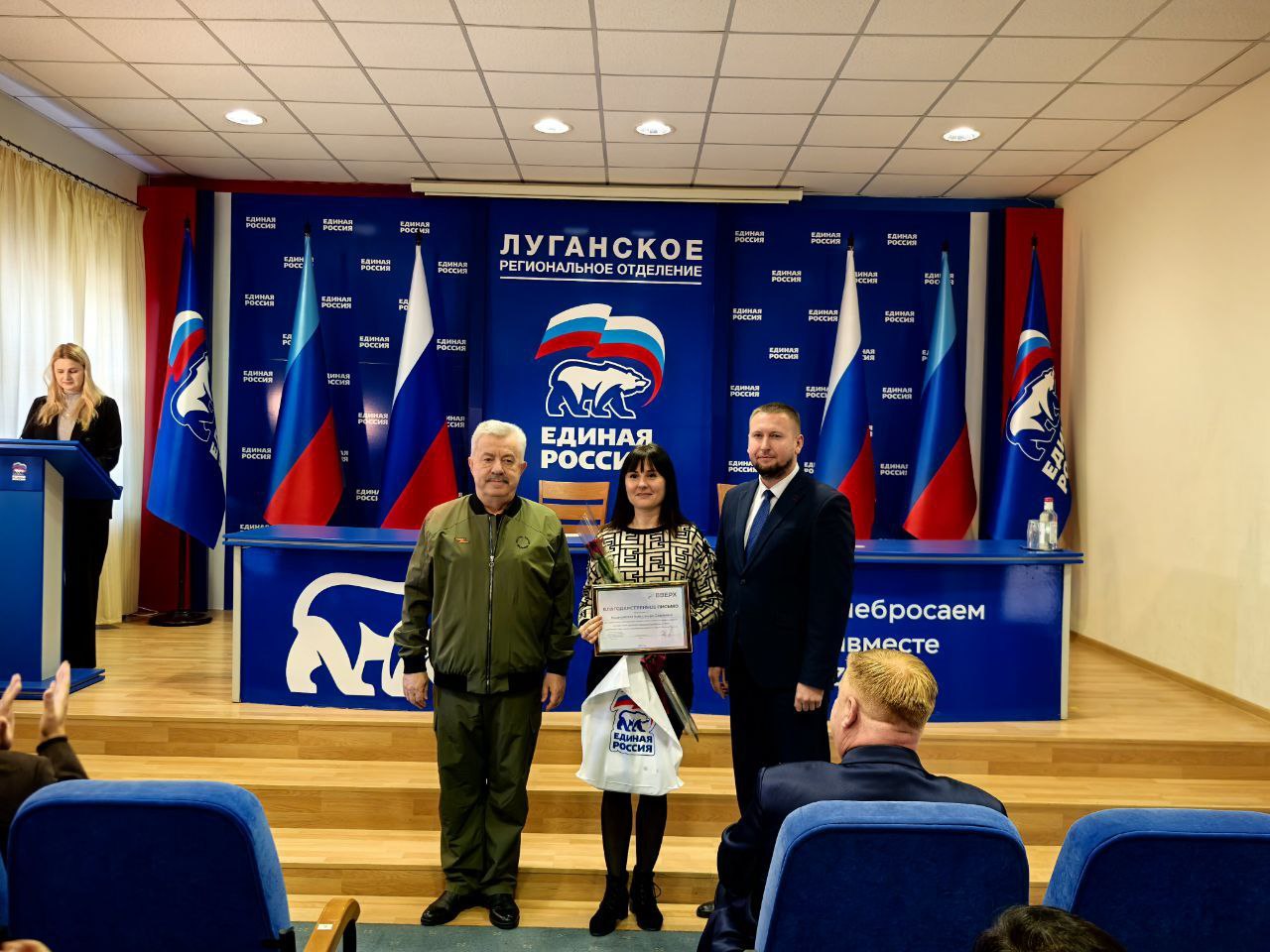 Сегодня в Луганском региональном отделении ВПП «Единая Россия» состоялось награждение активистов партии