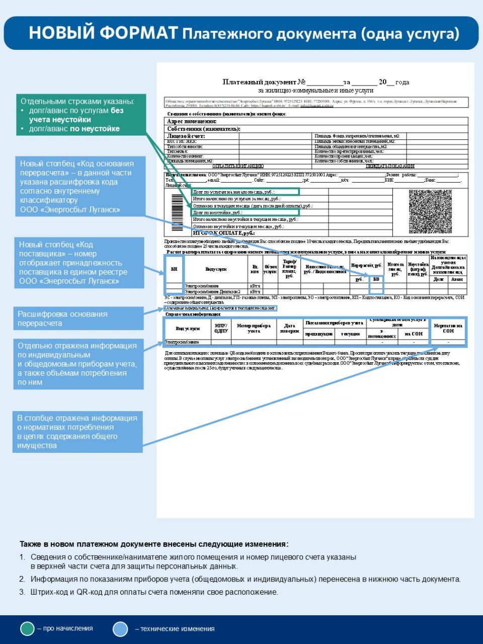 С октября 2025 года «Энергосбыт Луганск» вводит обновленный формат единого платежного документа (ЕПД)