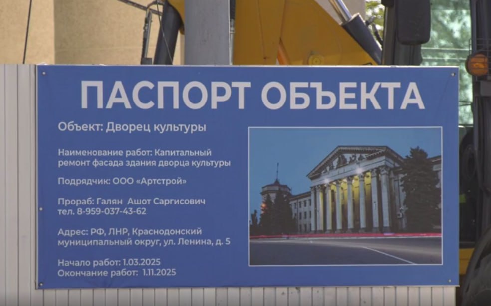 В рамках специального инфраструктурного проекта, который реализуется по Народной программе Единой России при поддержке шефа-региона Тюменской области, в Краснодонском округе ведутся масштабные работы по восстановлению фасада одного из важнейших культурных объектов — Дворца культуры имени «Молодой Гвардии». Этот проект направлен на сохранение исторического наследия и создание комфортных условий для культурного досуга жителей округа.