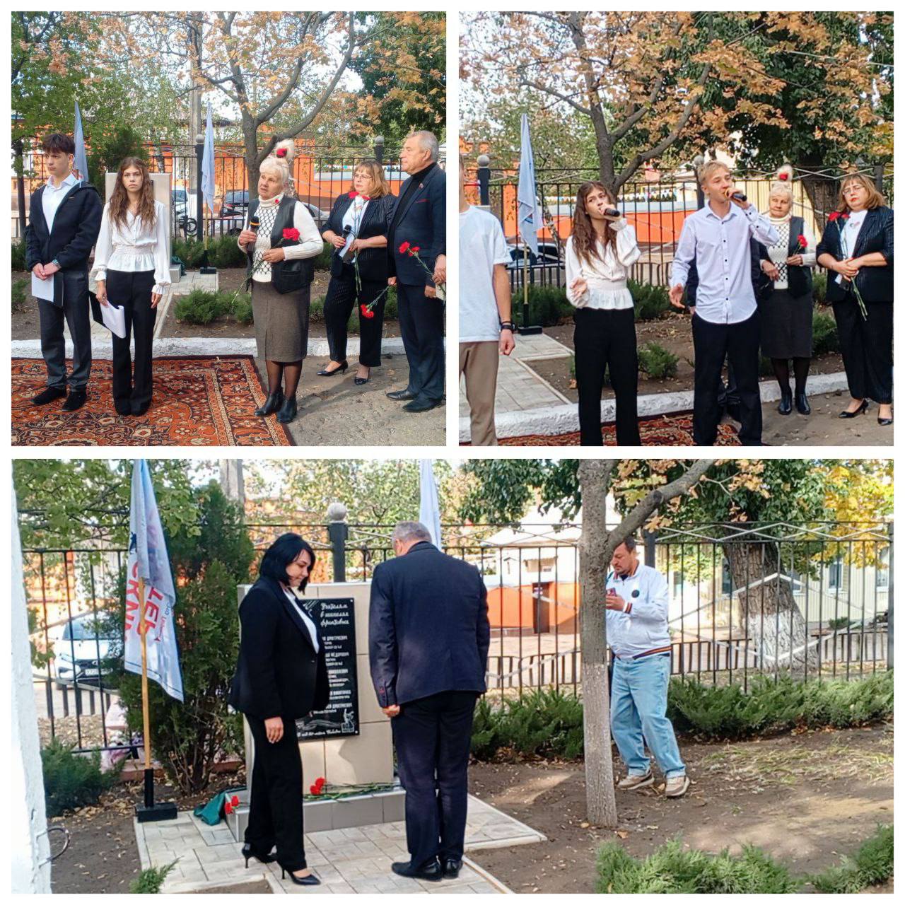Бондаренко Т.А., начальник управления образования Старобельского м.о., Вербицкая В.В., депутат совета Старобельского м. о., Юров Ю. П., депутат народного совета ЛНР, координатор проекта партии «Единая Россия» «Историческая память Луганской Народной Республики», участник СВО.