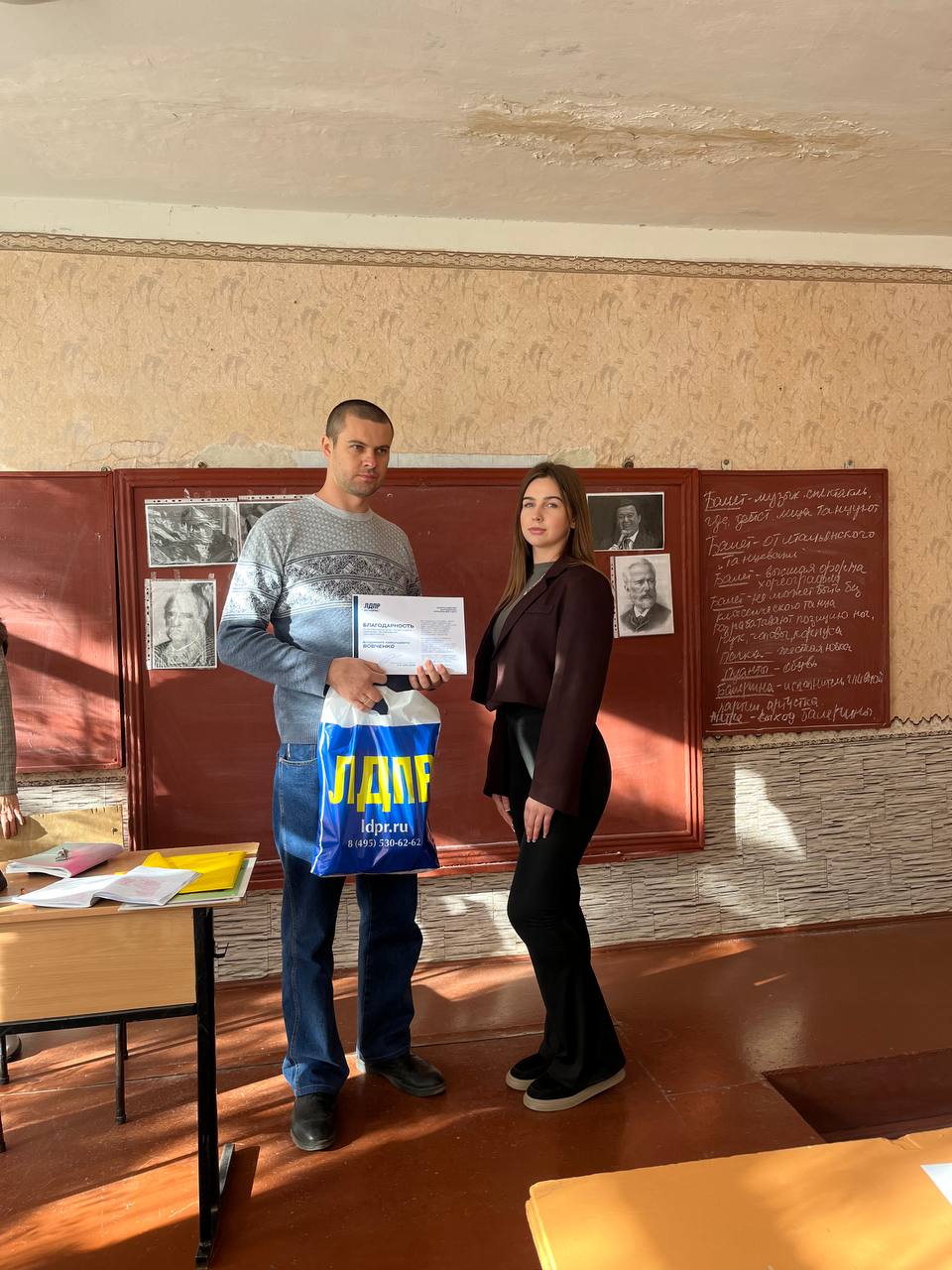 Сегодня в стенах 40-й школы Луганска произошло важное событие! Заместитель руководителя Молодежной организации ЛДПР ЛНР, Анастасия Апанасова, с гордостью вручила благодарности учителям школы.