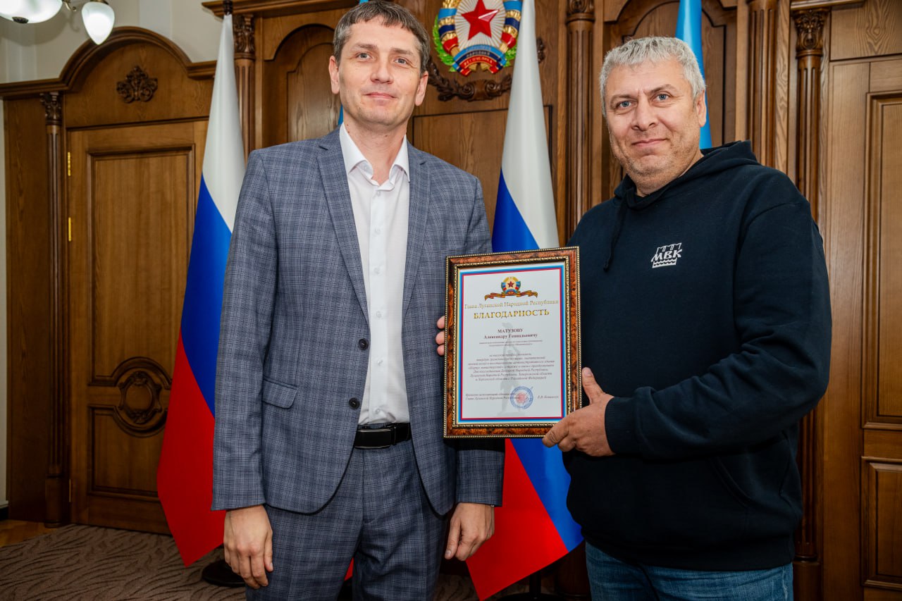 Они получили Благодарность Главы ЛНР за высокий профессионализм, твердую гражданскую позицию, значительный личный вклад в восстановление Луганска.