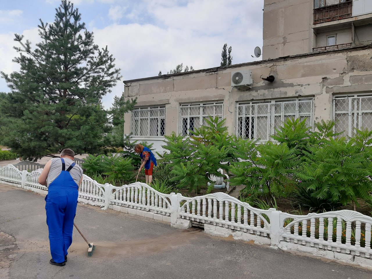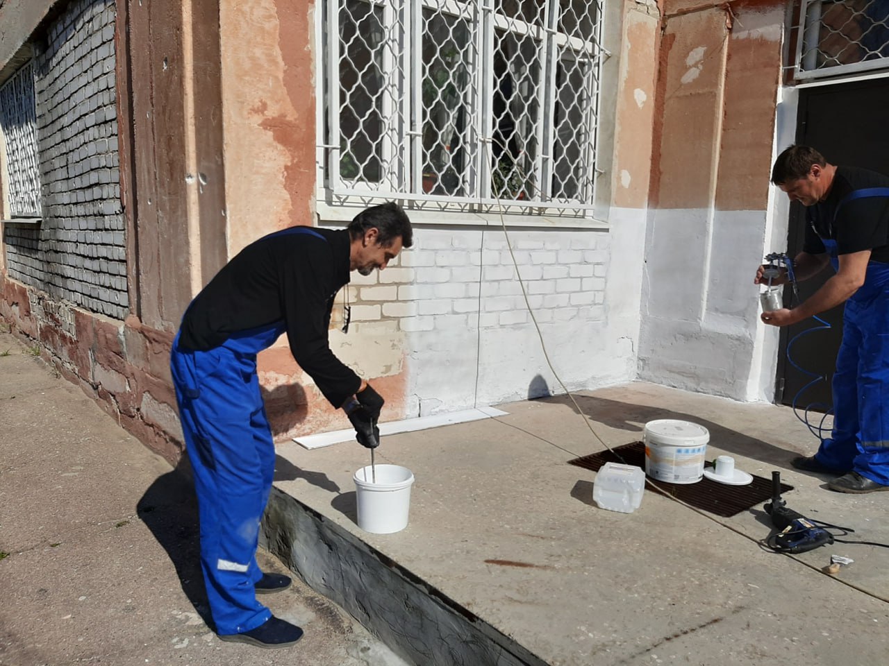 Наружные работы: Побелка и покраска фасадов здания, а также мытье окон.