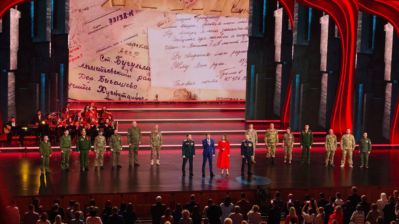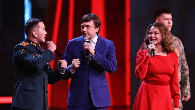 Денис Кириллов вместе с Министром просвещения РФ Сергеем Кравцовым, актрисой Екатериной Гусевой, директором «Вершины» Иваном Бондюковым и учителями – участниками СВО исполнили песню «Нам нужна одна победа» на праздничном концерте ко Дню учителя.