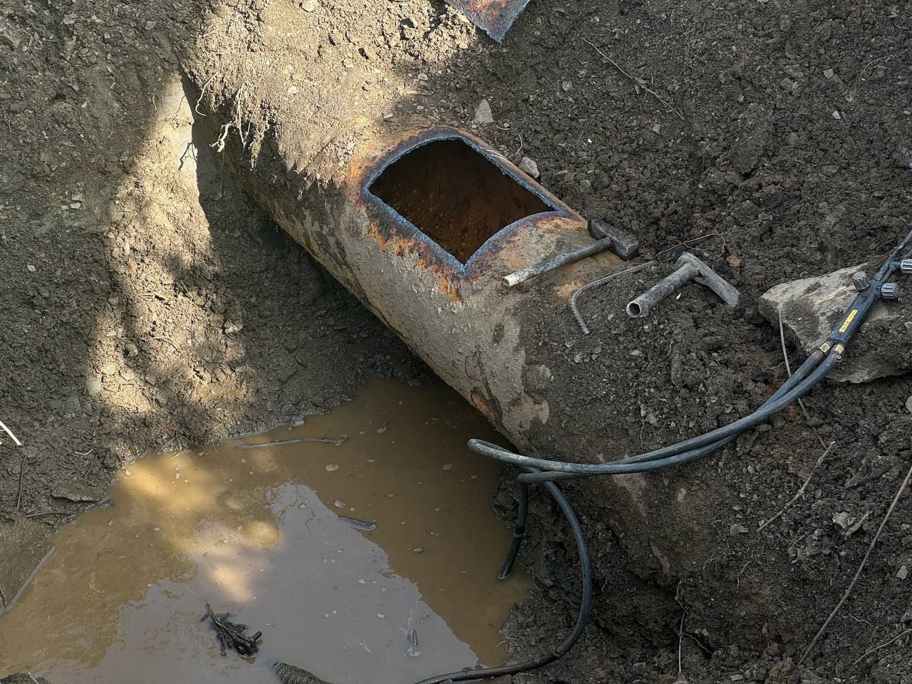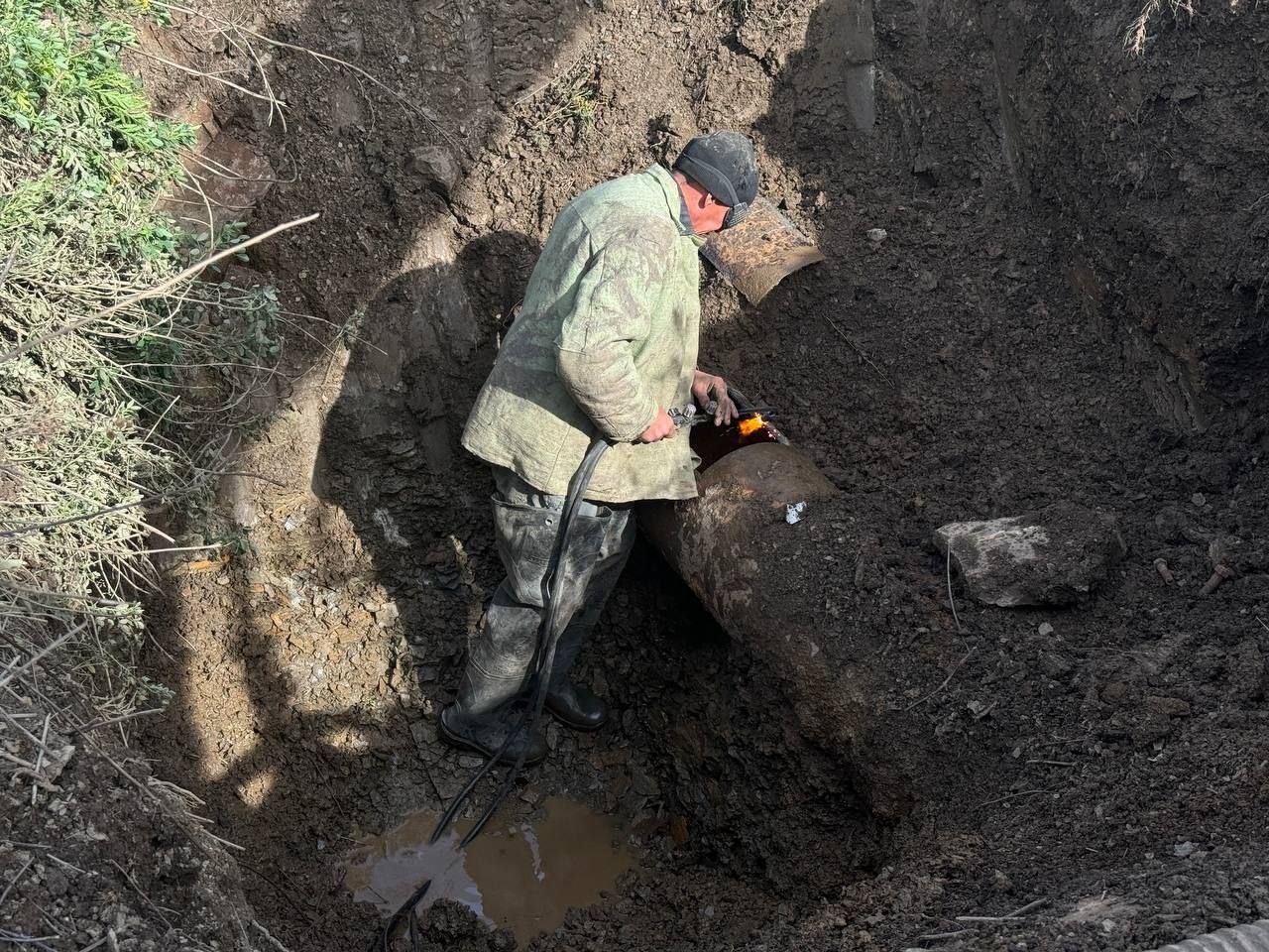 В работах были задействованы 11 специалистов и 4 единицы техники. В ходе ремонта устранили повреждения на 2 участках трубопровода.
