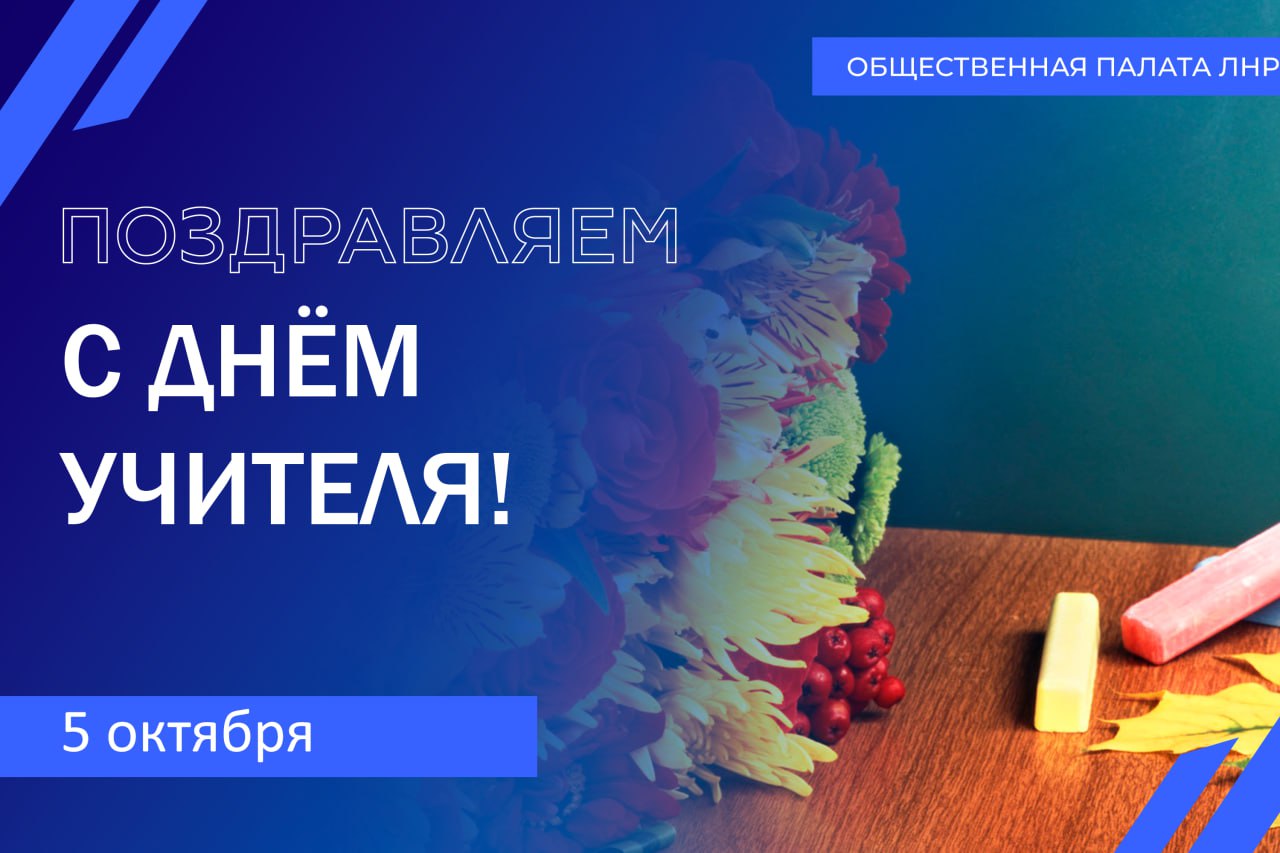 Общественная палата Луганской Народной Республики искренние поздравляет всех педагогов и учителей с профессиональным праздником — Днём учителя, который является яркой и значимой частью празднования труда всех работников сферы образования!