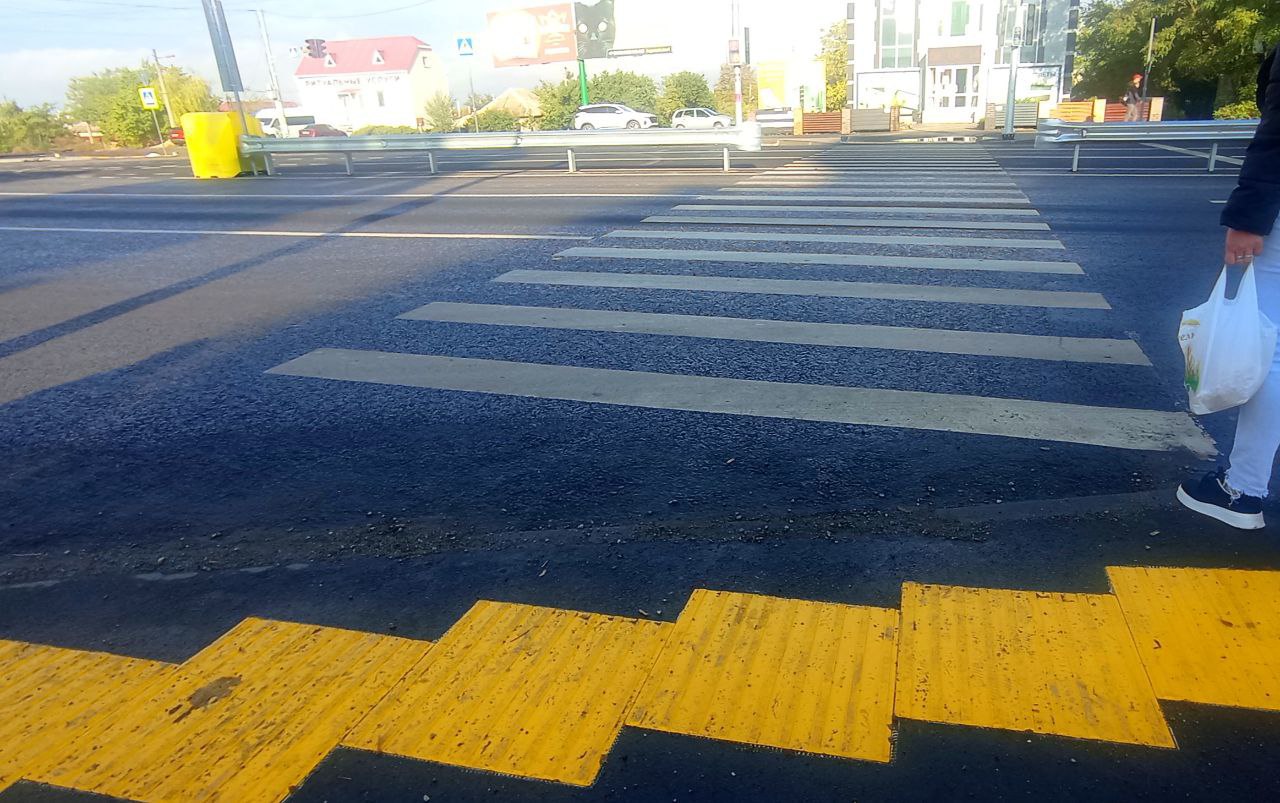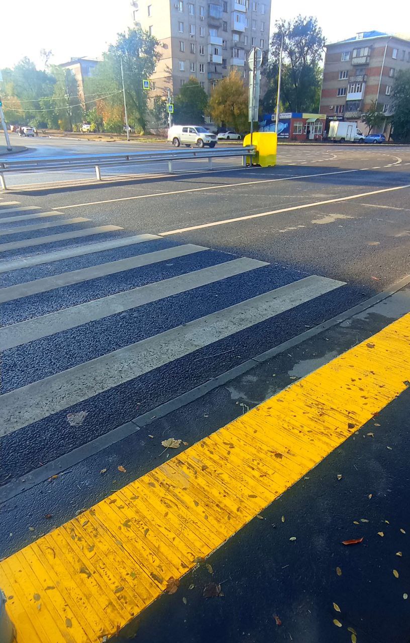 Коммунальщики устанавливают тактильную плитку на пешеходных переходах вдоль реконструированной ул. Ватутина
