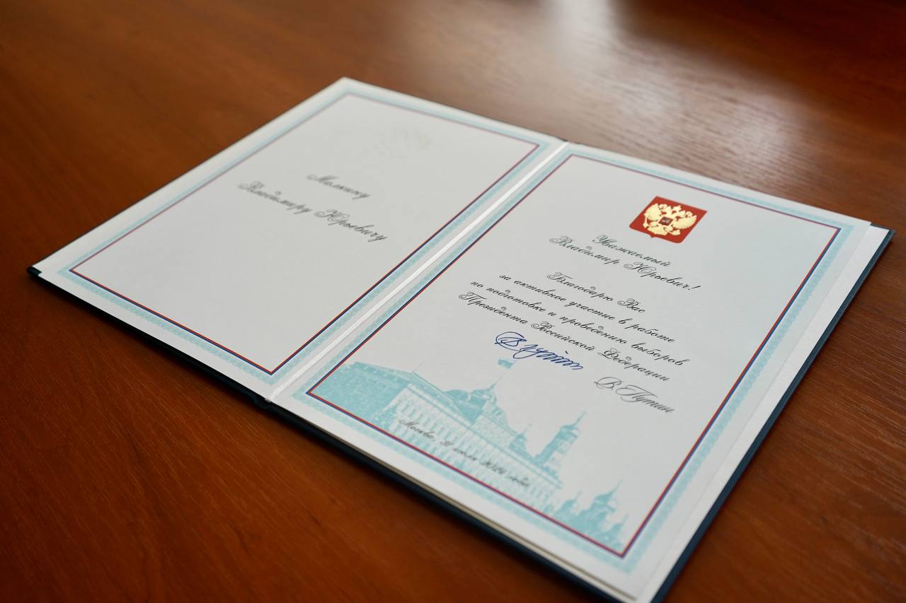 Благодарность от Президента РФ Владимира Путина