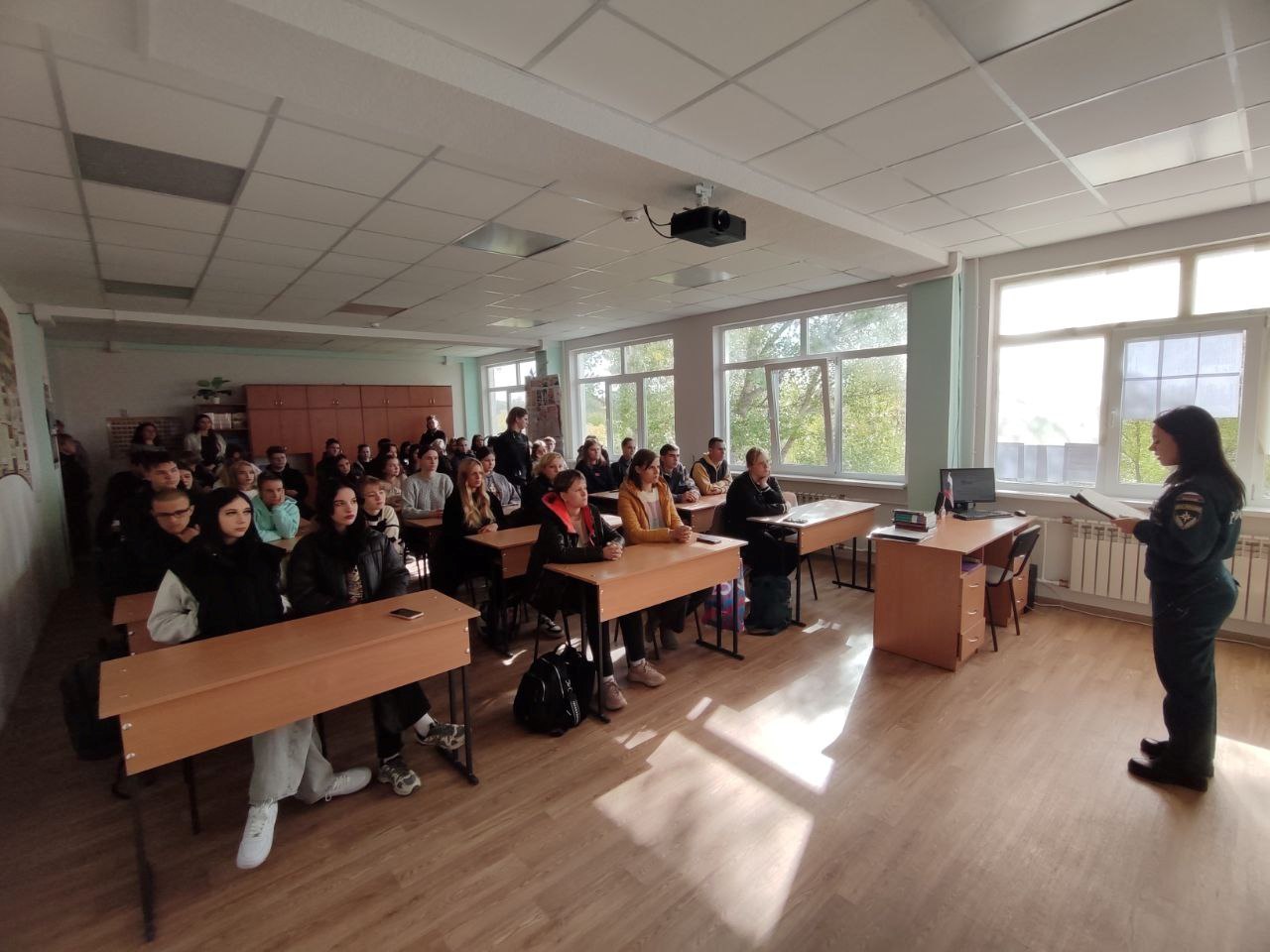Студентам колледжа рассказали, что такое чрезвычайная ситуация, какие действия необходимо предпринимать населению по сигналам оповещения гражданской обороны, а также ознакомили с правилами пожарной безопасности, и оказания первой помощи.