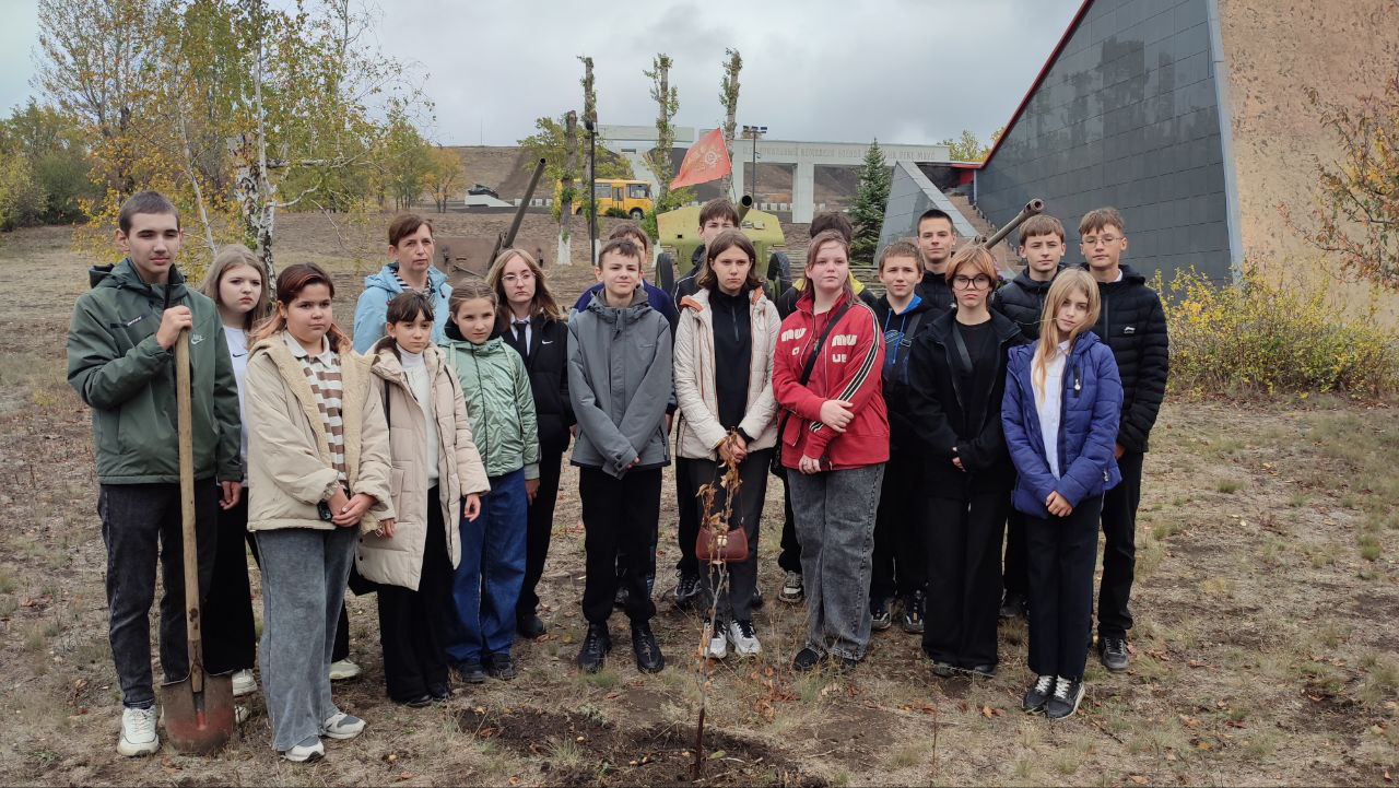 И, по сложившейся традиции, на территории Музейного комплекса боевой славы на реке Миус ребятами было высажено дерево, как символ исторической памяти о погибших воинах времен Великой Отечественной войны.