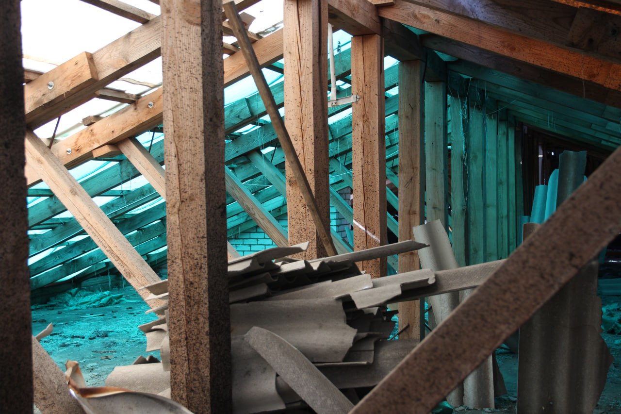 – Кровля у нас шиферная и поэтому весь шифер разбился, когда было попадание. Часть съехала из-за взрывной волны. Когда дождь, то все заливает до третьего этажа, – делится женщина.