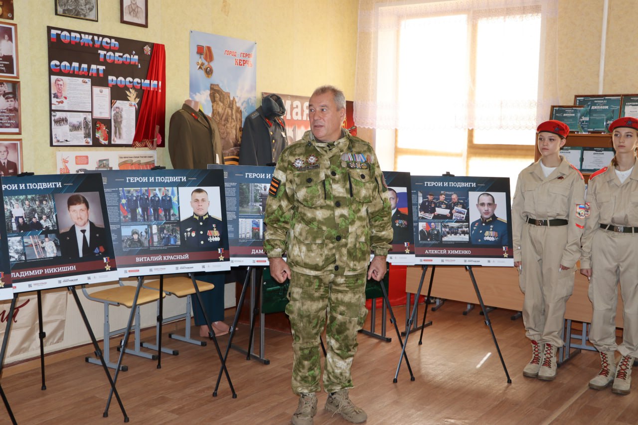Передвижная выставка, посвященная подвигу двадцати Героев России, открылась в Стахановской гимназии № 26, сообщили в администрации города.