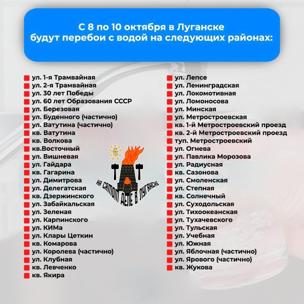 С 8 по 10 октября часть города останется без воды