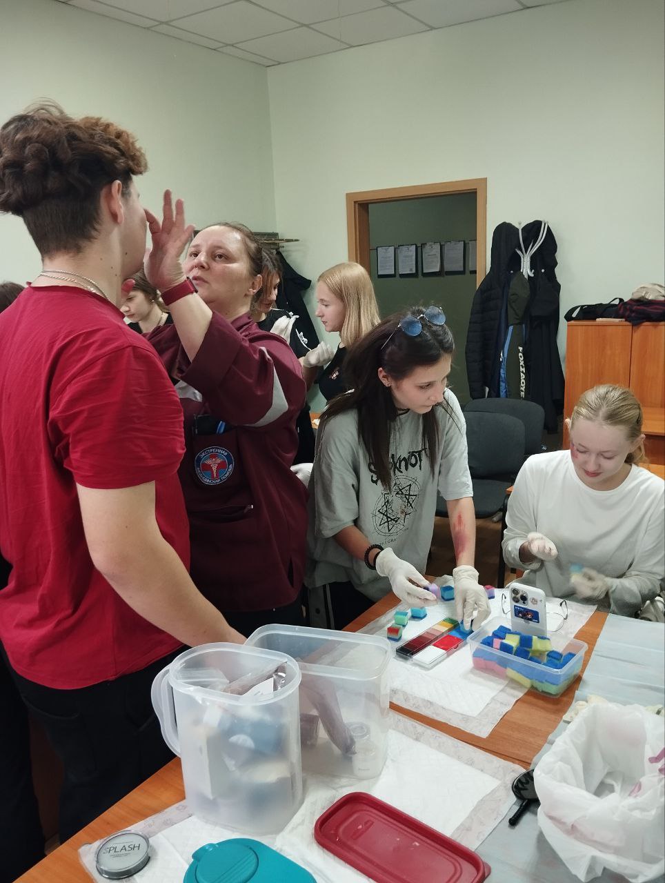 На мастер-классе юные актеры научились наносить грим, позволяющий имитировать различные ранения и травмы, что существенно обогатит их сценические образы и повысит реалистичность выступлений. В подарок они получили набор красок для грима.