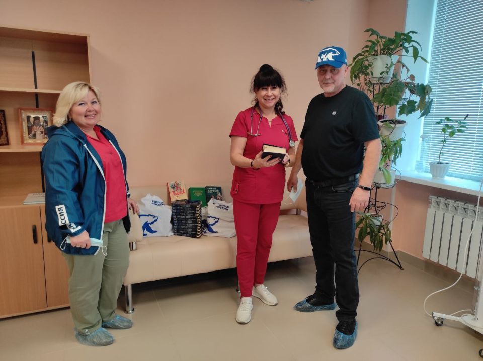 Также депутат Совета городского округа от фракции партии "ЕДИНАЯ РОССИЯ" Олег Лядовский и Секретарь первичного отделения №1 Юлия Фесенко посетили ГБУЗ "Северодонецкая центральная городская многопрофильная больница" ЛНР, чтобы передать помощь тем, кто сейчас нуждается в заботе. В рамках акции передали помощь в виде необходимых лекарственных препаратов, а так же подборку книг для пациентов кардиологического отделения.