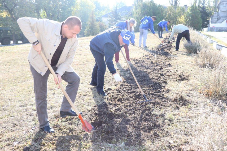 Уверен, что высаженные сегодня цветы, зацветут весной ярким пламенем в знак светлой памяти о каждом погибшем, отдавшем свою жизнь за право на жизнь будущих поколений. Благодарен нашим активистам партии «ЕДИНАЯ РОССИЯ» за предоставленные луковицы цветов,