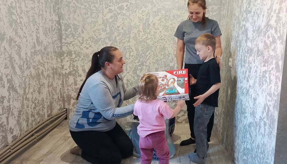 К ней с визитом приехала Елена Иванчук, активистка проекта «Женское движение Единой России». Вместе с добрыми словами она принесла всё, что пригодится в повседневной жизни: тёплые зимние курточки для детей, подгузники, канцтовары, игрушки и, конечно, сладкие подарки — чтобы порадовать малышей.