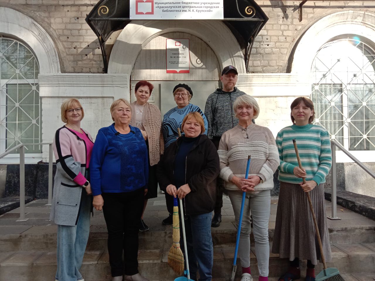 В рамках эстафеты добрых дел «Добрые дела – лучший подарок президенту» активисты «Единой России», сотрудники Краснолучской центральной городской библиотеки имени Н.К. Крупской провели уборку прилегающей территории.