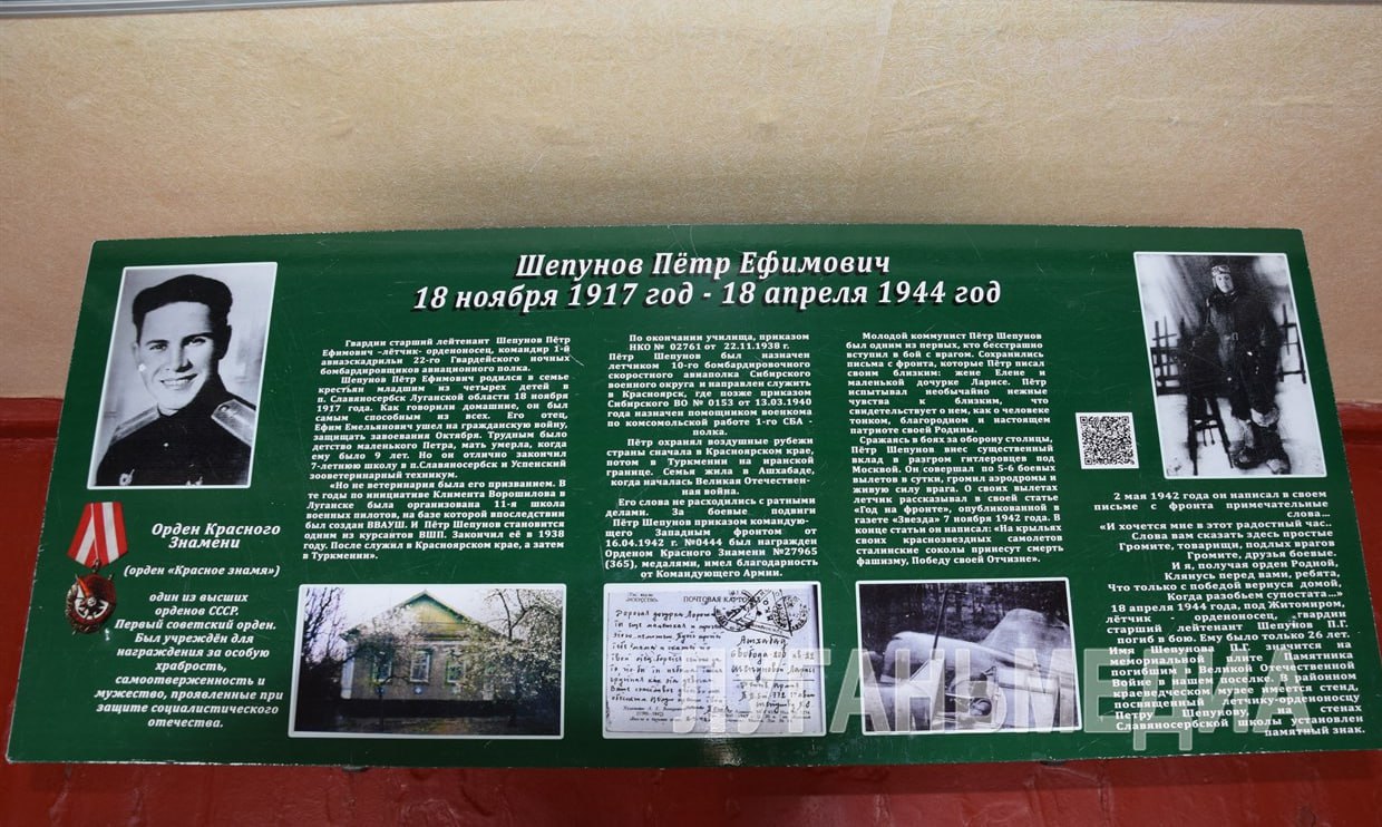 Парта Героя, посвященная Петру Ефимовичу Шепунову, кавалеру ордена Красного Знамени, погибшему в годы Великой Отечественной войны, была открыта в Славяносербской средней школе имени Дмитрия Полянского. О нем наш сегодняшний рассказ. Далее...