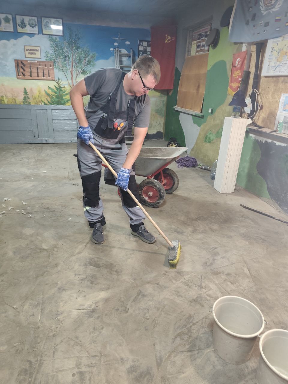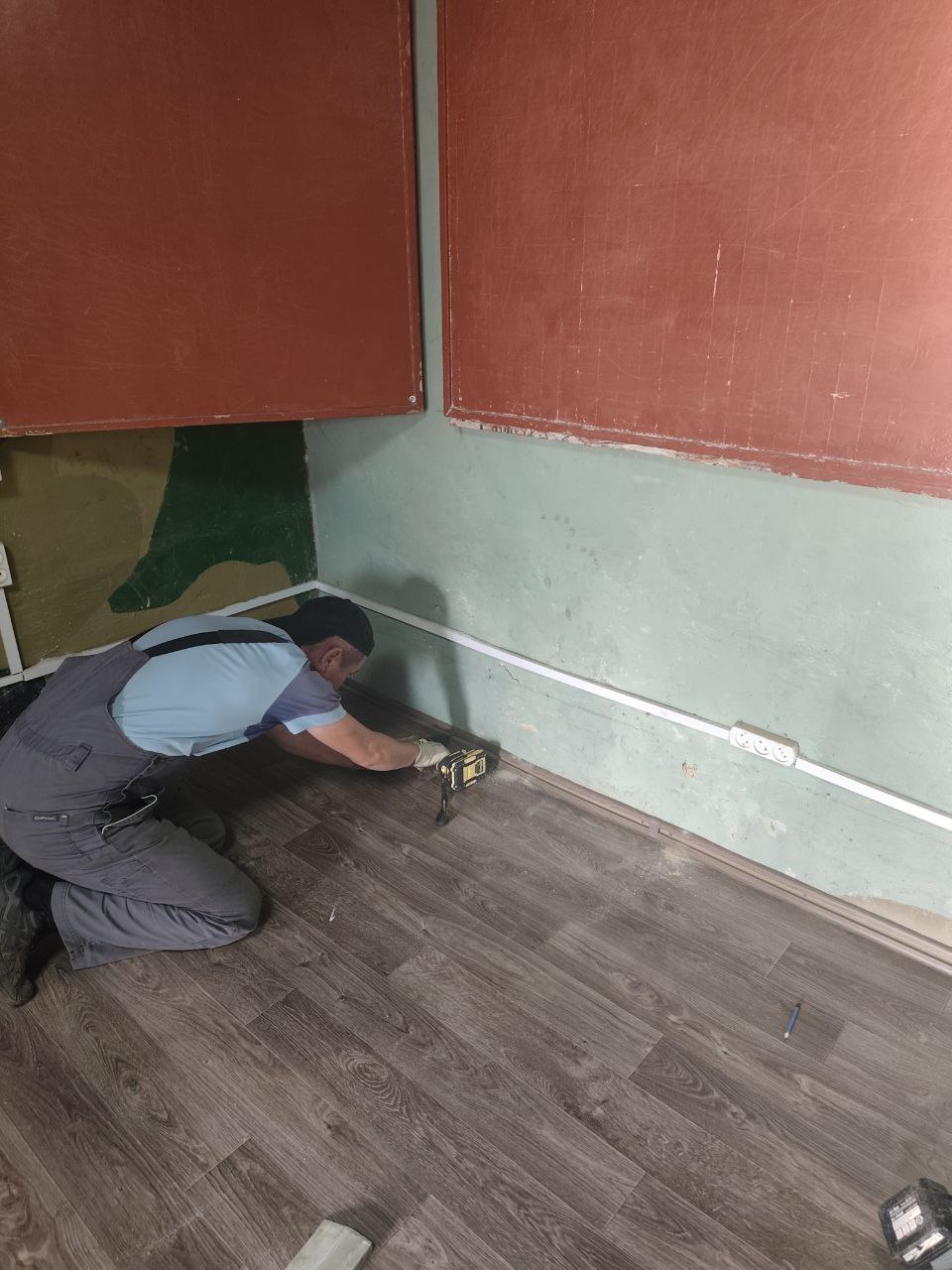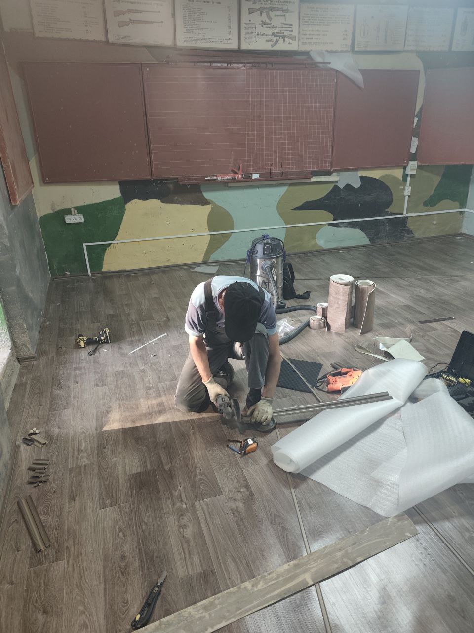 В рамках двустороннего соглашения о сотрудничестве между Удмуртской Республикой и Лутугинским муниципальным округом рабочая группа из Удмуртии оказала помощь в ремонте музейной комнаты школы №2 города Лутугино. Основное внимание было уделено ремонту напольного покрытия.