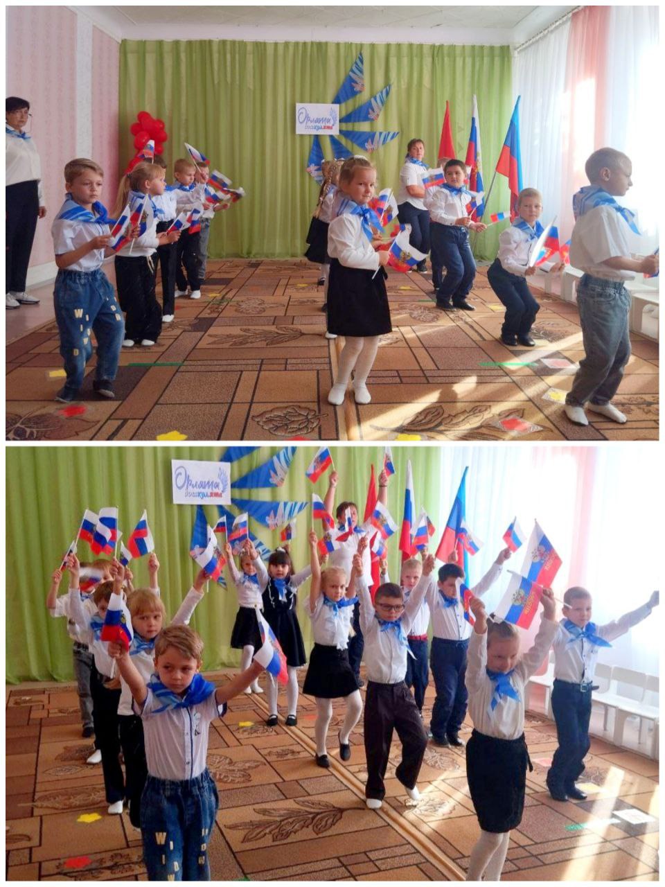 С приветствием обратились заведующая дошкольного учреждения и советник директора школы, пожелав ребятам гордо нести звание и преодолевать преграды. Завершился праздник флешмобом под песню «Орлята России».