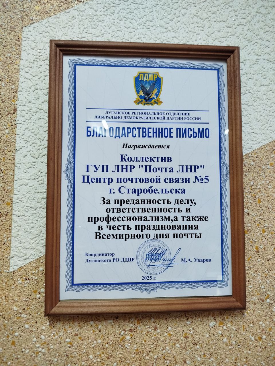 #ЦПС5 #Старобельск #ЛДПР #Почта #Благодарность #НашТруд