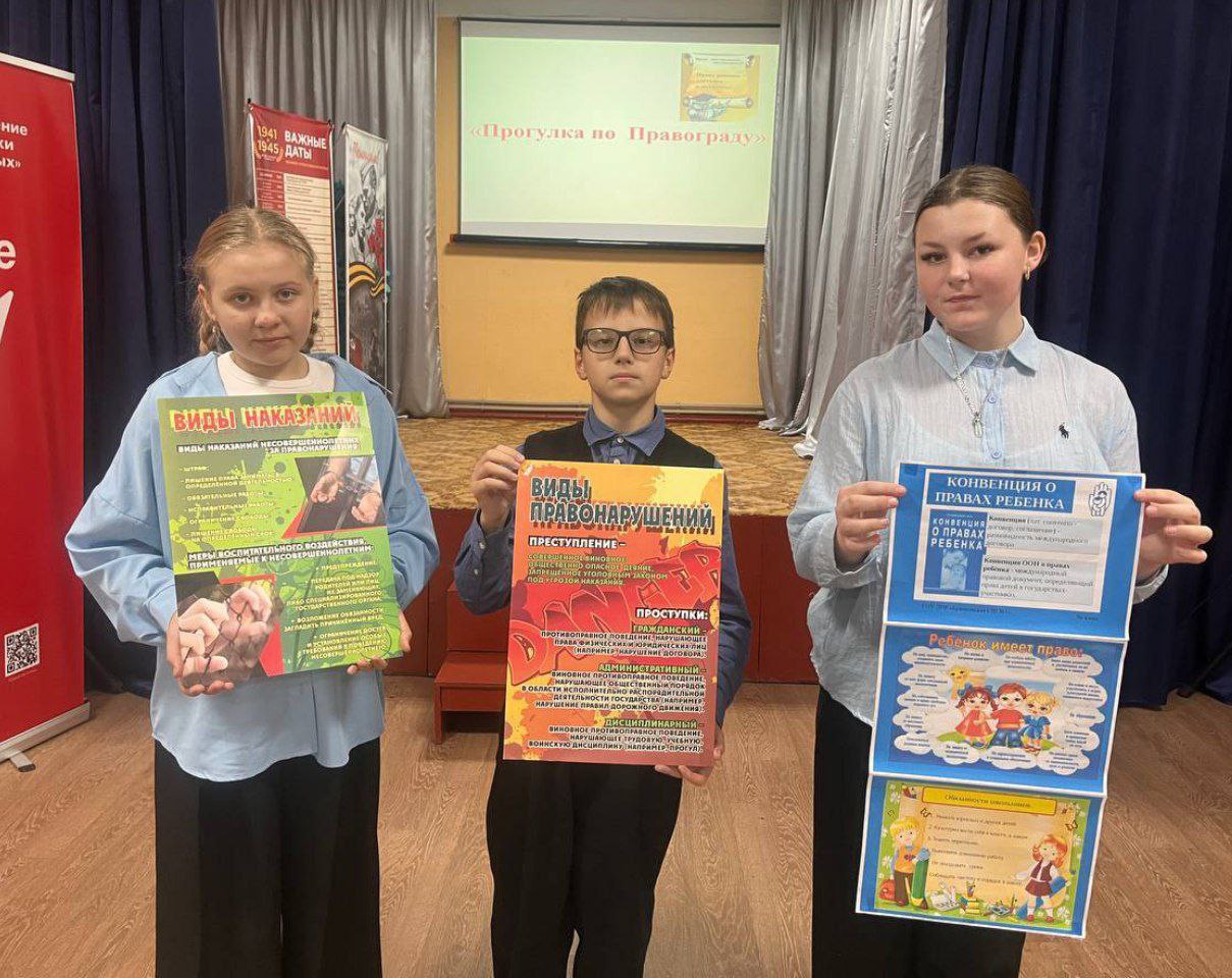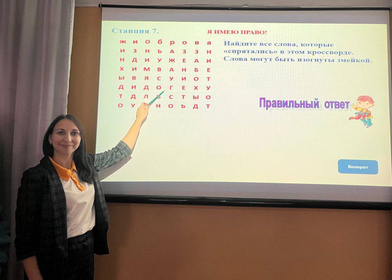 Во время викторины ребята решали разнообразные задачи, включая сканворд, что способствовало развитию логического мышления. Закрепили правовые знания участники в ходе игры "Я обещаю... ".