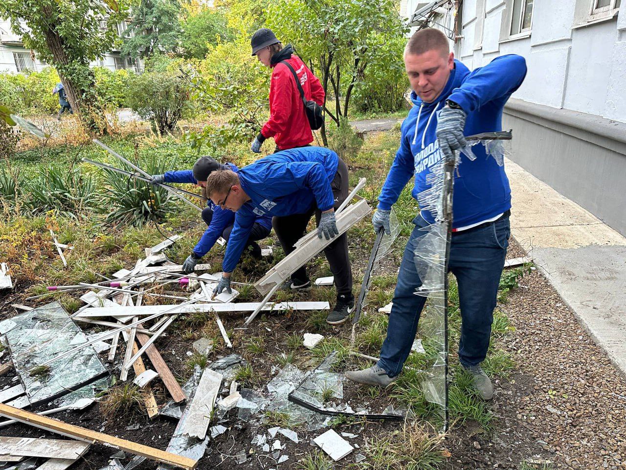 С проспекта и со двора убран строительный мусор. Организованы ремонтно-восстановительные работы по закрытию теплового контура пострадавшего МКД.