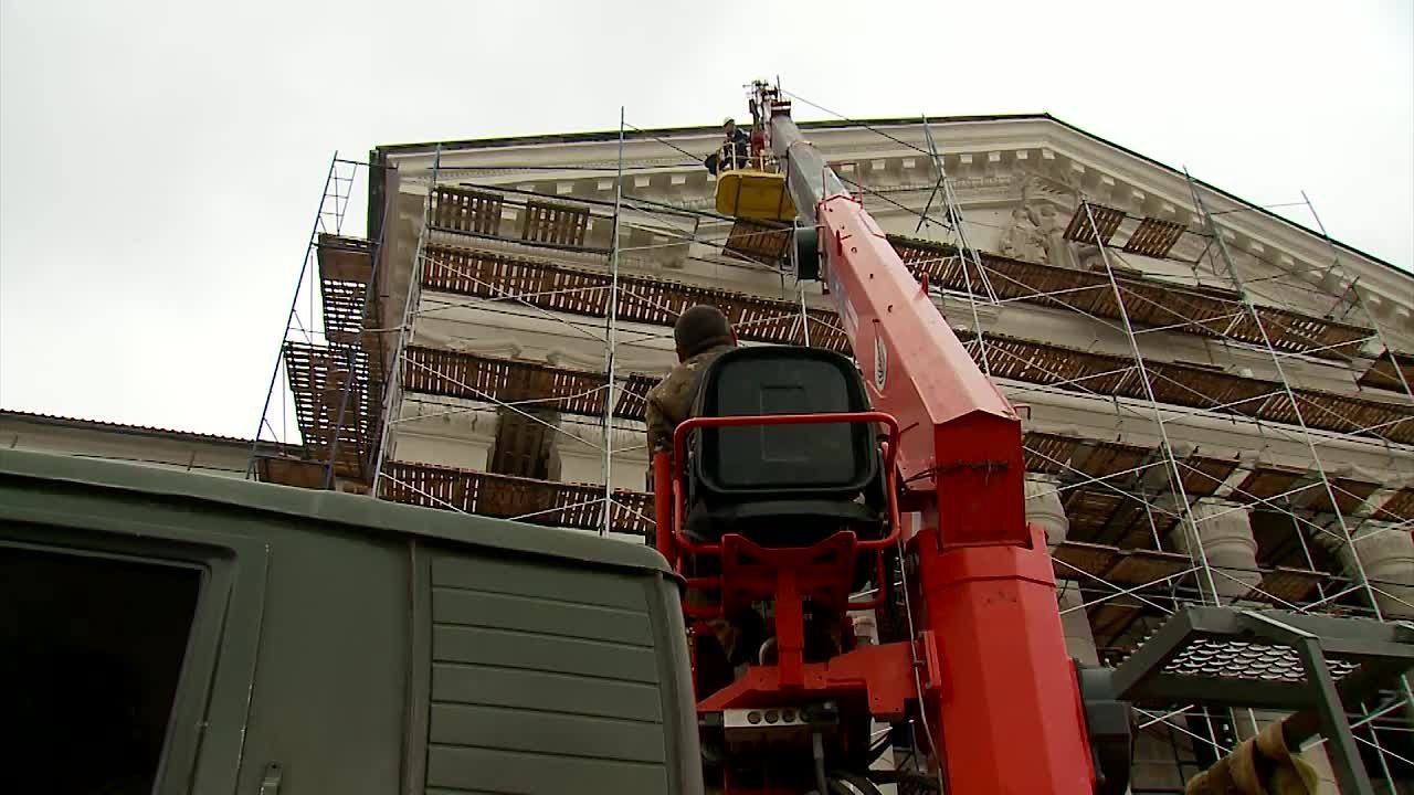 Представитель компании «Артстрой» Смбат Карапетян про установку фигур на фронтоне здания ДК имени «Молодой Гвардии» и ход работ на объекте. Завершается покраска, началась установка желобов для водоотведения.
