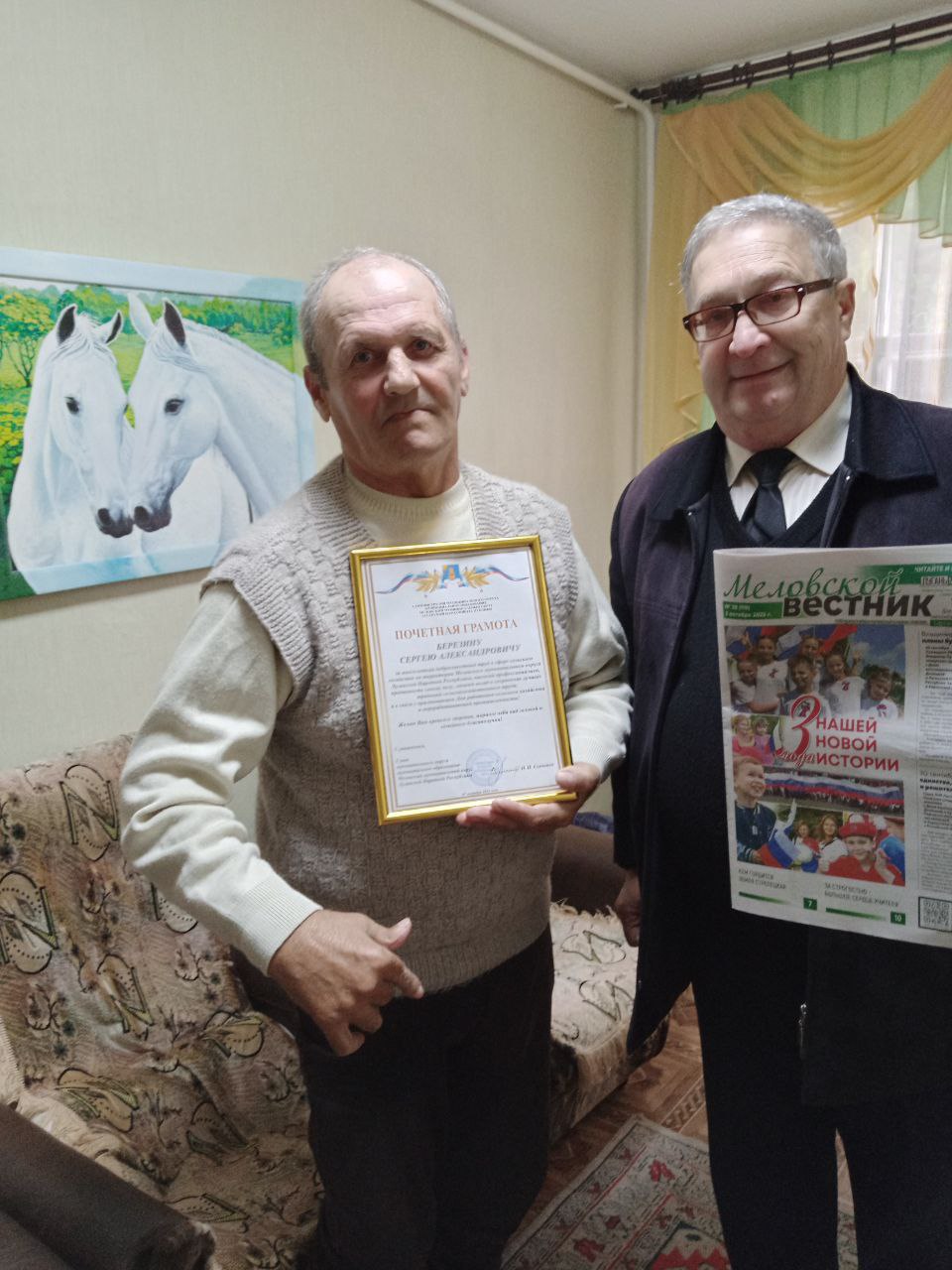 В преддверии Дня работника сельского хозяйства, начальник отдела по обеспечению жизнедеятельности села Новострельцовка Синенко Олег Валерьевич, торжественно вручил благодарственные письма от имени Главы Меловского МО Савченко Олега Петровича, самым заслуженным пенсионерам и работникам Стрелецкого конного завода, чей стаж работы составляет 40 лет и более!