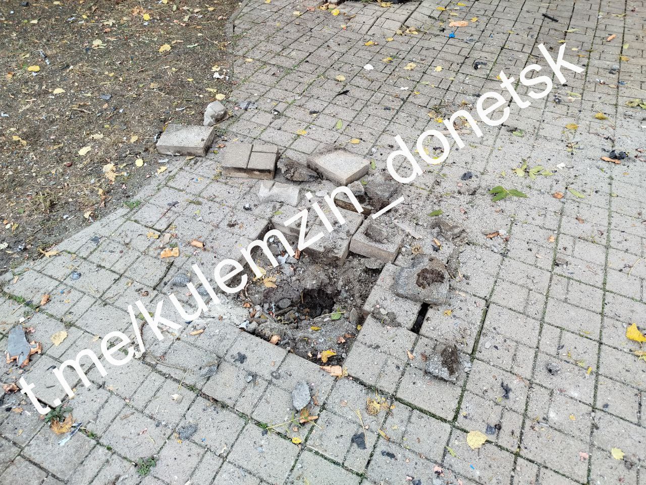 Нарушено остекление двух окон в здании администрации городского округа Донецк, а также повреждены тротуарная плитка и кованый мостик в парке кованых фигур, сообщает мэр Кулемзин.