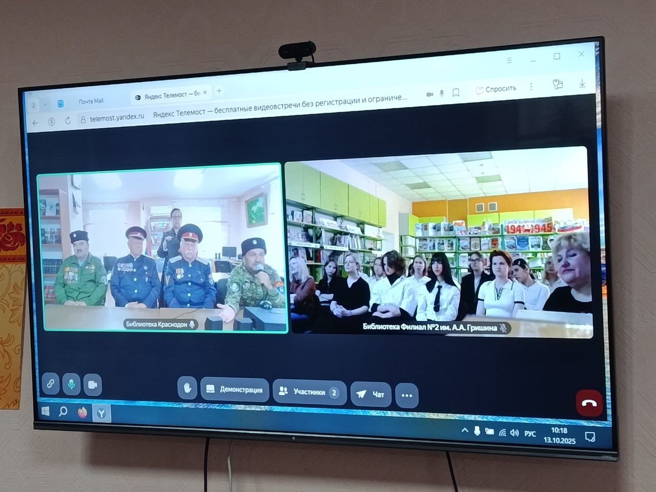 13 октября в Центральной городской библиотеке Краснодона состоялся телемост «Встреча с героями Z», приуроченный к празднику Покрова Пресвятой Богородицы и Дню казачества Луганской Народной Республики.