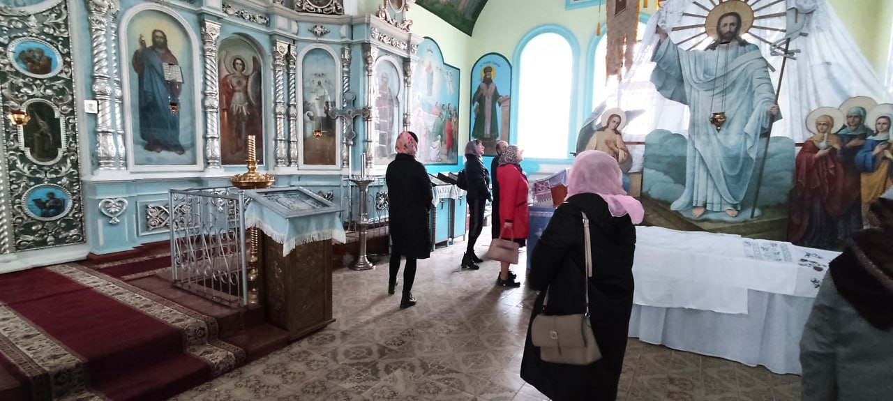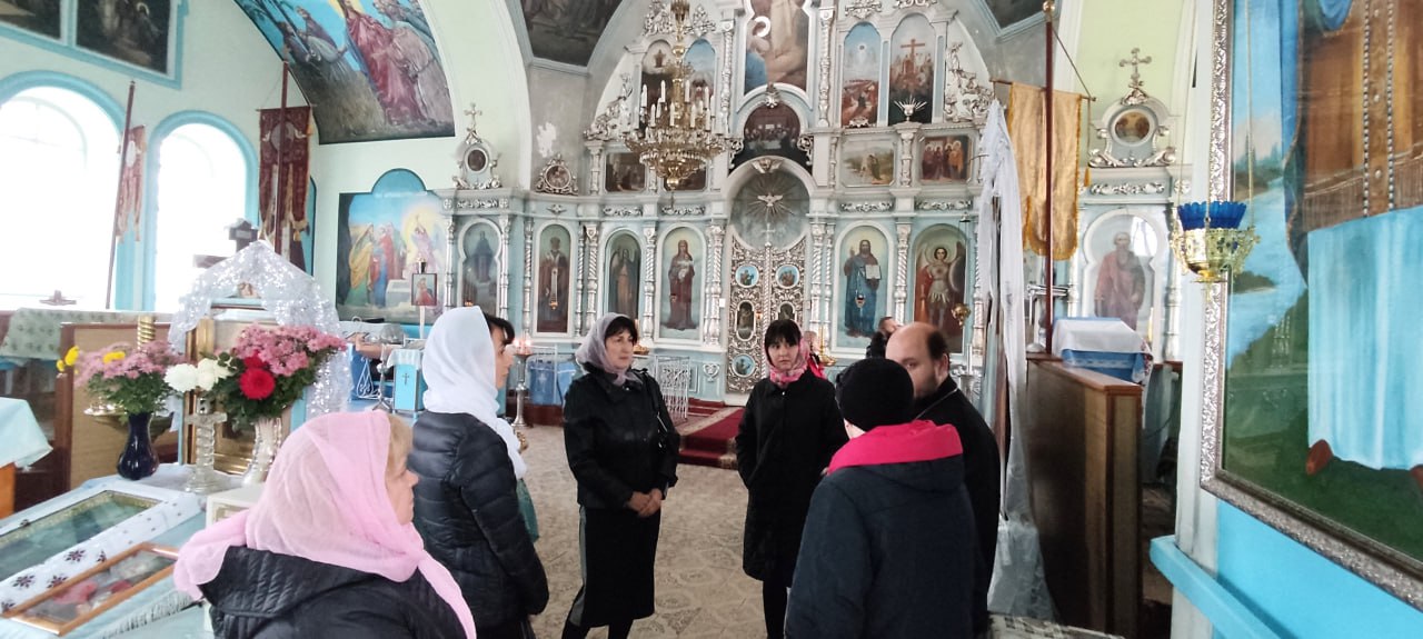 В Храме Успения Пресвятой Богородицы участниц женского клуба «НоваЯ. УспешнаЯ. СчастливаЯ» при ТО ГКУ «РЦЗН ЛНР» в г.Красный Луч встретил настоятель - Александр Исаев и провел интересную и познавательную экскурсию по церкви.