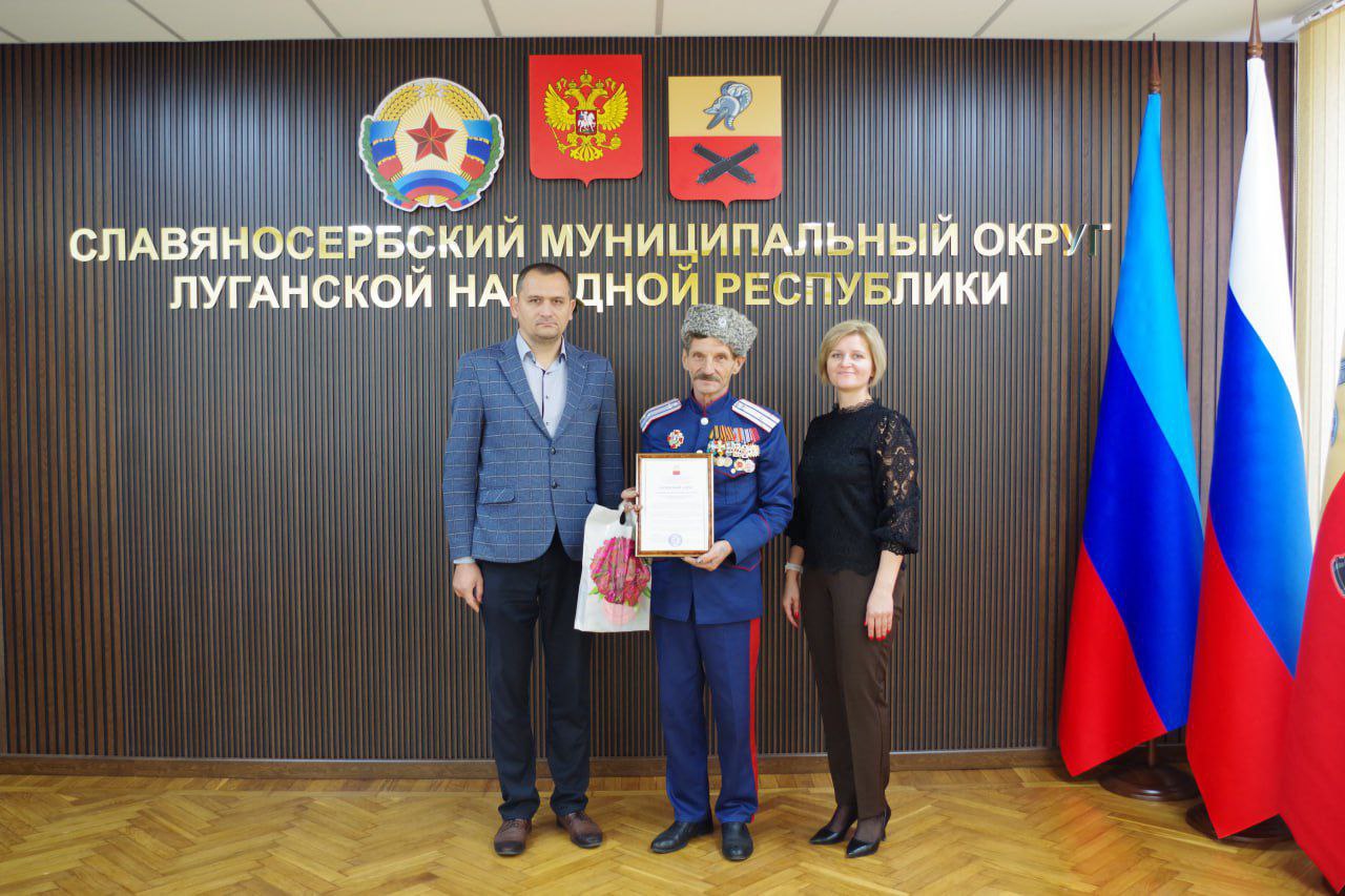 В администрации Славяносербского муниципального округа поздравили атамана Станичного казачьего общества «Станица Мироновская» Александра Козлова с Днем казачества. В поздравлении подчеркнули важность этого праздника для казачьего сообщества, а также выразили глубокое уважение к казачьим традициям и служению Отечеству.