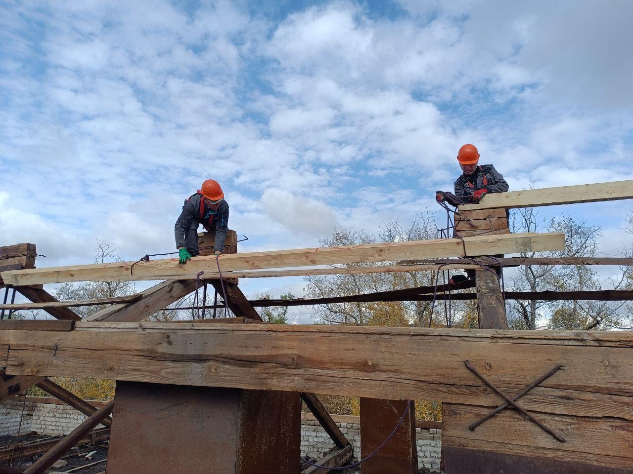 Рабочая группа регион-шефа Удмуртской Республики продолжает выполнение работ по капитальному ремонту кровли сельского дома культуры села Македоновка. На данный момент продолжается демонтаж старой стропильной системы кровли.