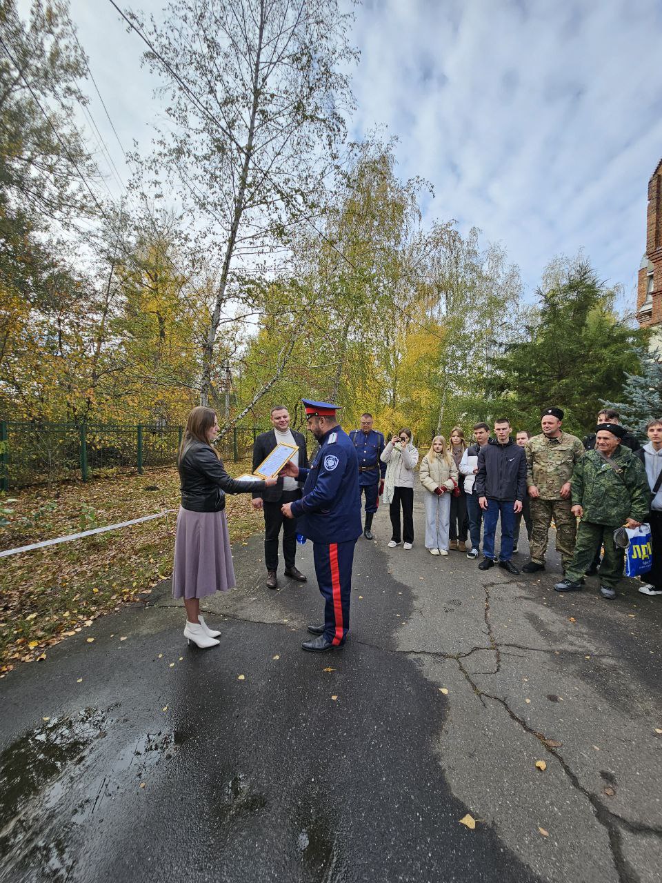Мы также поздравили станичанских казаков с праздниками, вручив благодарственные письма от Председателя Народного Совета ЛНР Дениса Мирошниченко и координатора Луганского РО ЛДПР Максима Уварова атаману Павлу Малиновскому, начальнику штаба Евгению Шпирко и заместителю начальника штаба Антону Лютикову.