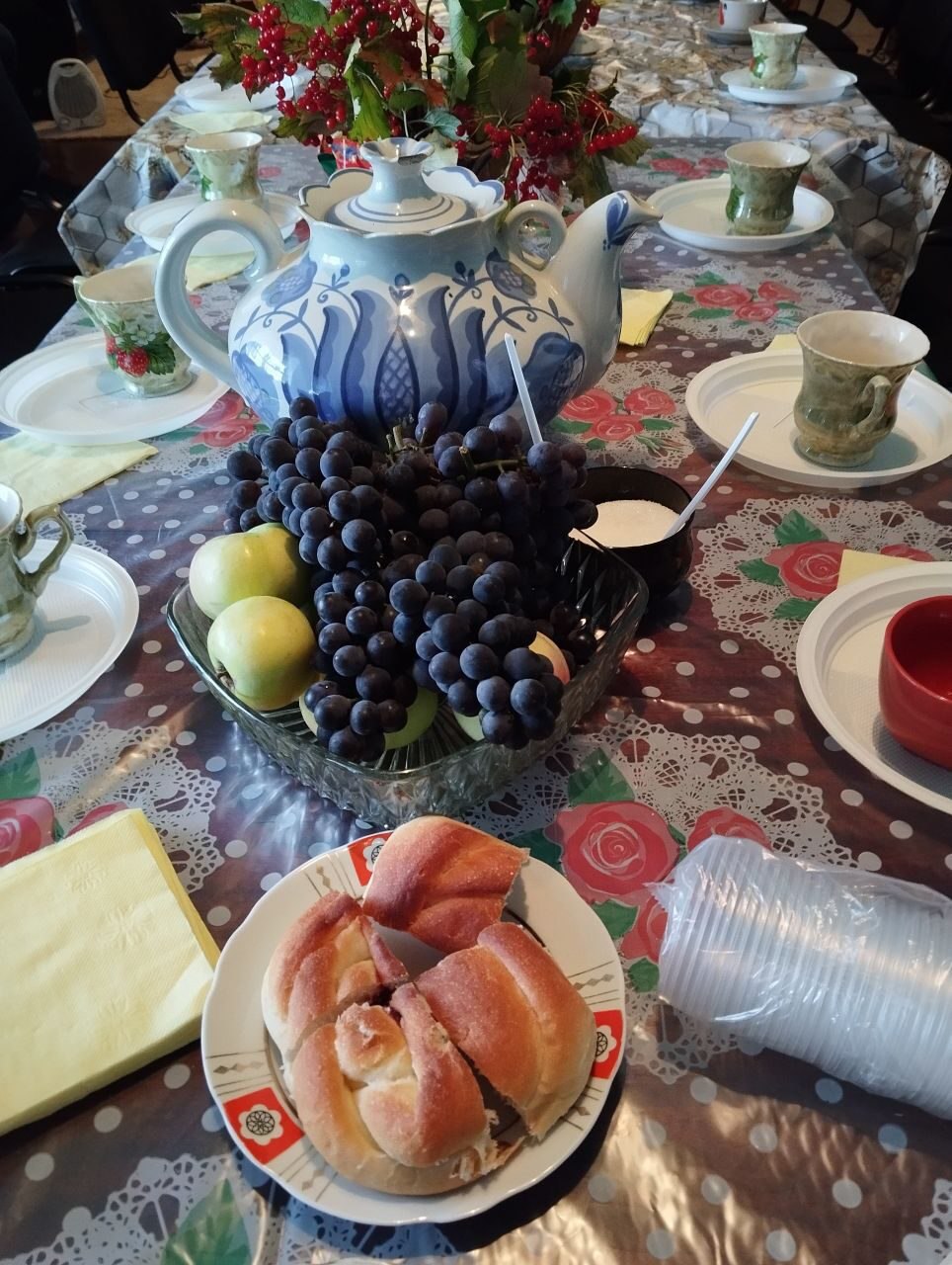 Праздничный стол, накрытый с любовью и заботой, стал настоящим украшением вечера. Дары осени , щедро предоставленные собственными садами и огородами, радовали глаз своим разнообразием и свежестью. Домашняя выпечка, приготовленная с душой, источала восхитительный аромат, наполняя пространство уютом и теплом. Конфеты и сладости , яркие и аппетитные, стали приятным дополнением к праздничному угощению.
