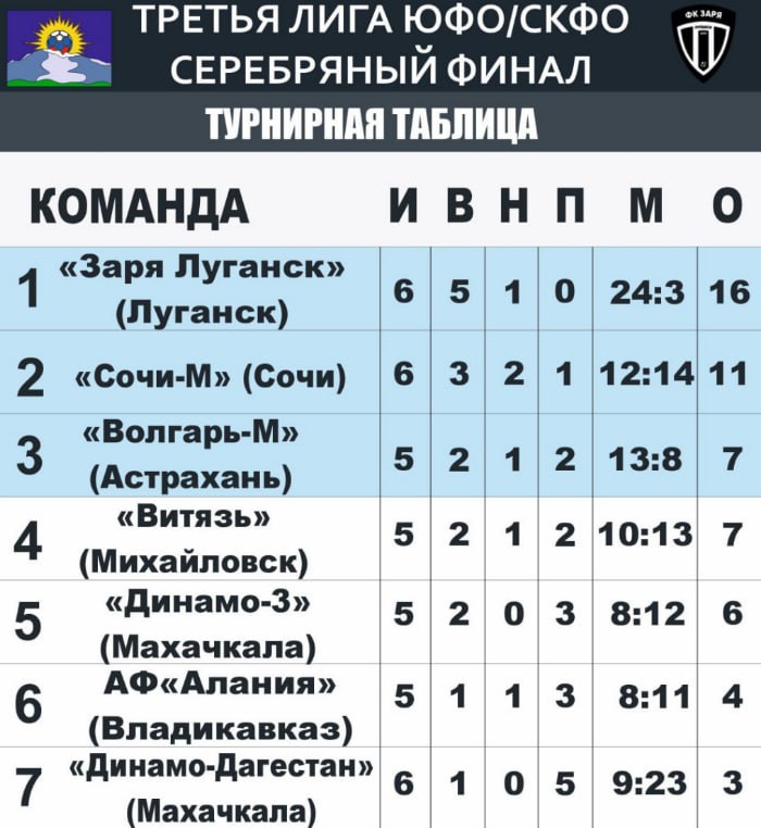 ЛУГАНСКАЯ «ЗАРЯ» побеждает в Серебряном финале Третьей лиги ЮФО/СКФО!