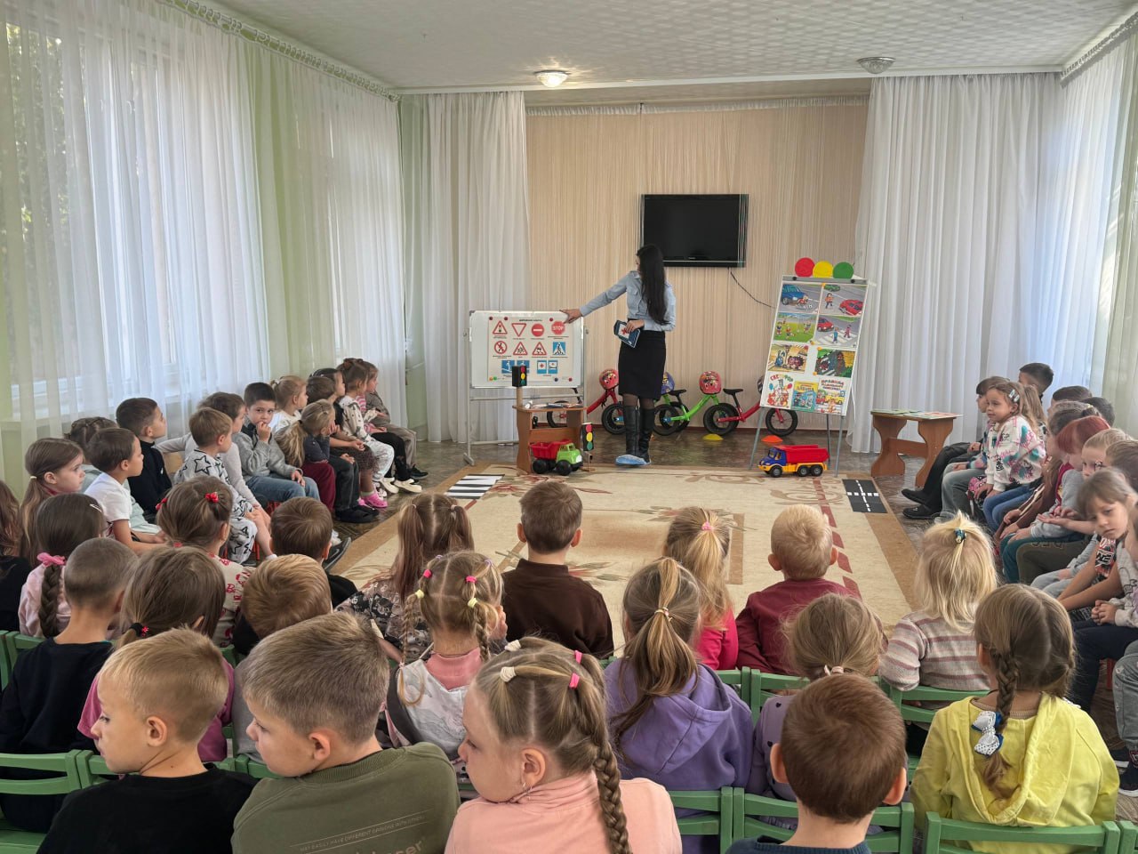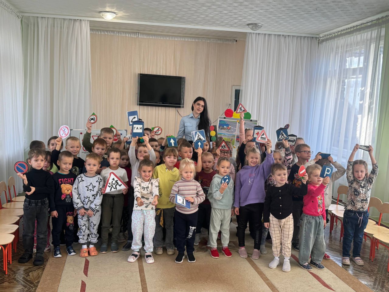 Инспектор в доступной и увлекательной форме объяснила детям, что означают основные дорожные знаки, как правильно переходить дорогу по пешеходному переходу, почему нельзя играть рядом с проезжей частью и как важно носить светоотражающие элементы.