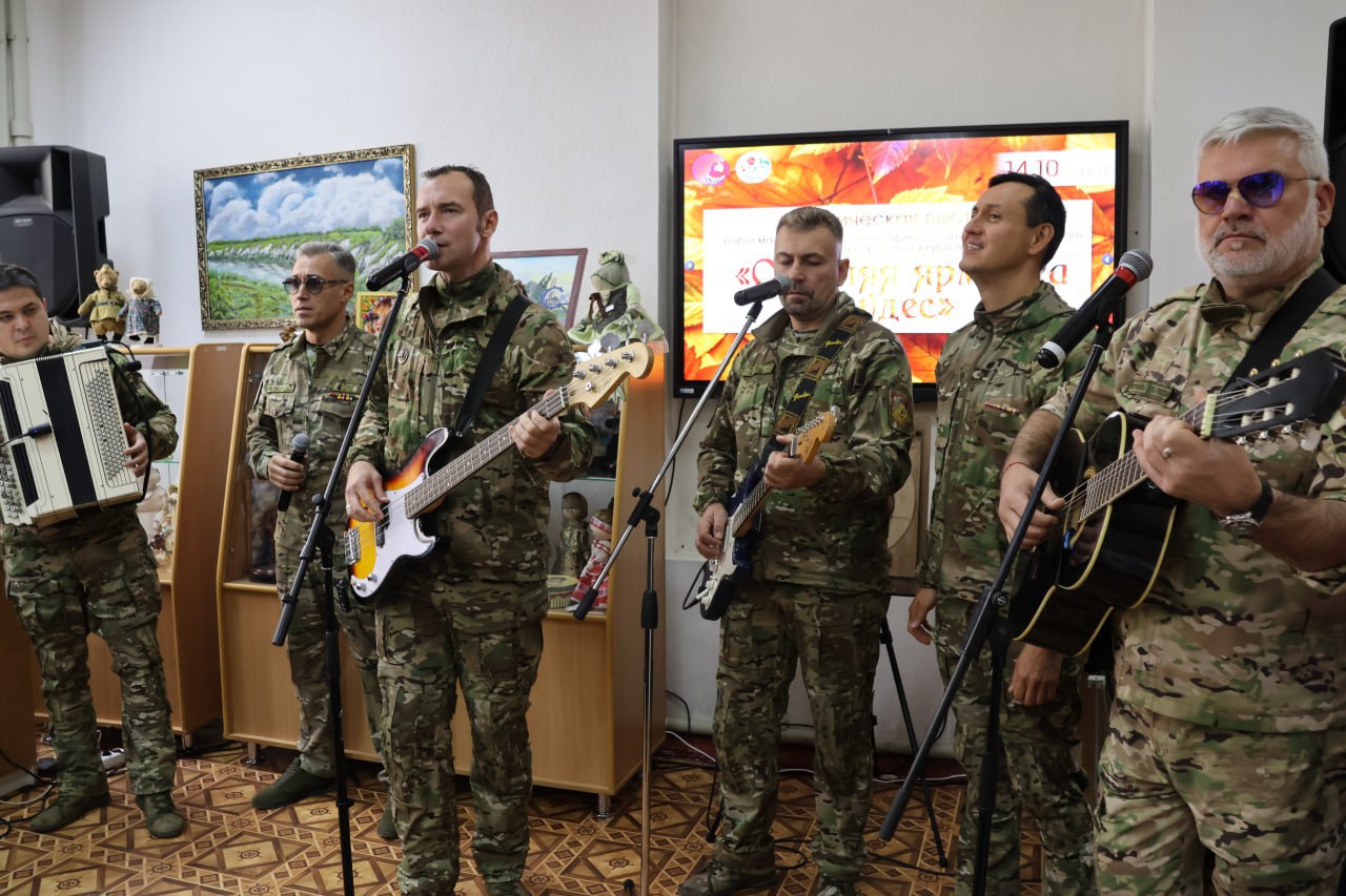Атмосферу праздника дополнили казачьи песни в исполнении творческой бригады «Рубиновая звезда», работающей на фронте.