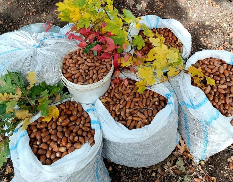 С начала осени собрано 1060 кг желудей из дубовых рощ. Собранные плоды пройдут стратификацию для повышения всхожести до 80% и будут использованы для выращивания саженцев. Эти саженцы высотой 20-30 см направят на восстановление лесов, пострадавших от боевых действий и пожаров.