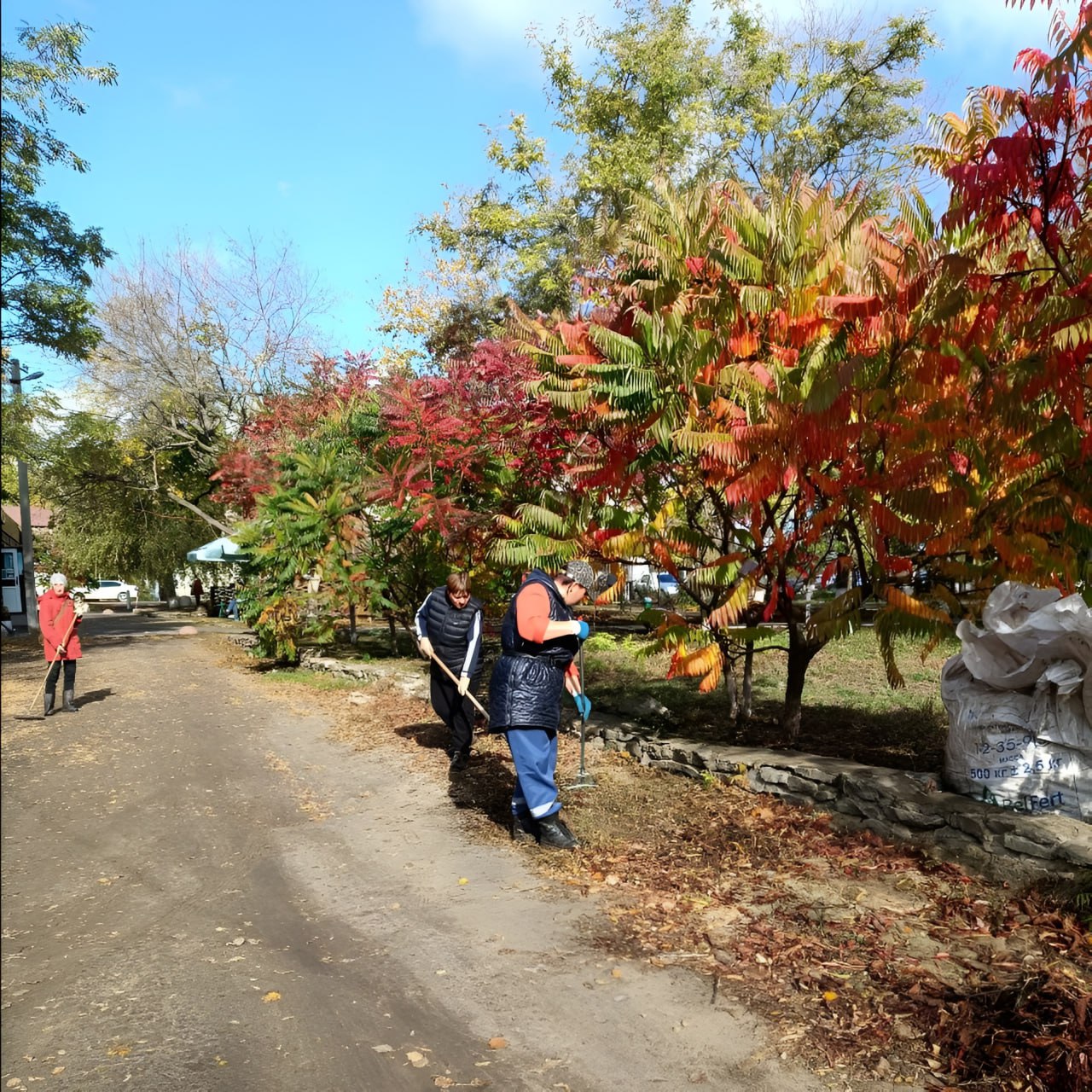 Осенняя уборка включает в себя сбор листьев, очистку тротуаров и детских площадок от мусора, а также благоустройство общественных зон. Работники прикладывают максимум усилий, что позволяет им эффективно справляться с большими объемами работы.