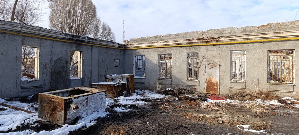 Здание было разрушено в результате обстрела ВСУ летом 2014 года. На данный момент строители уже закончили возведение новых стен и перекрытий, преступив к работам по внутренней отделке здания, которое планируют сдать в эксплуатацию в ближайшее время.